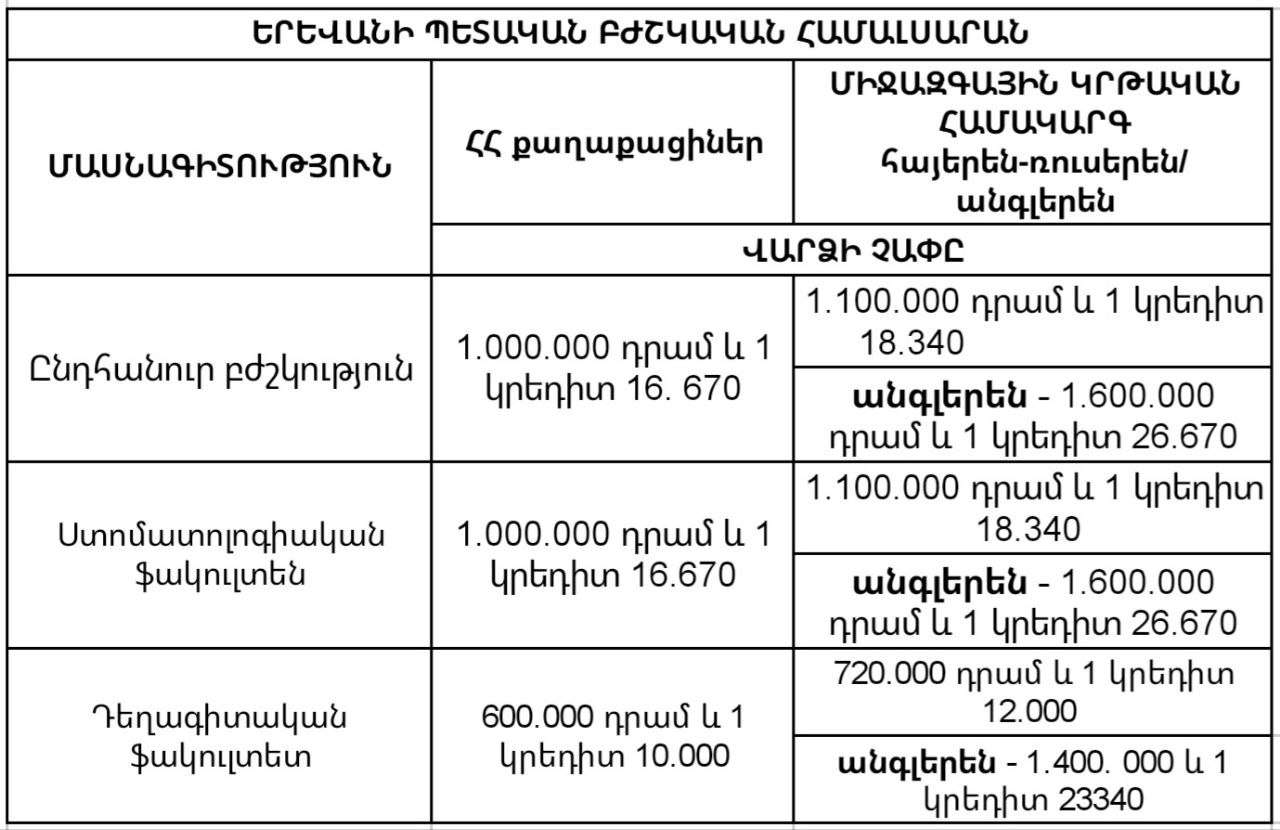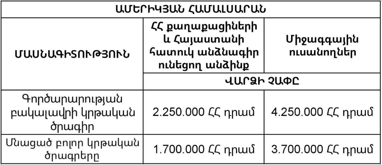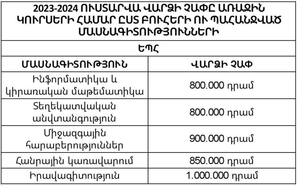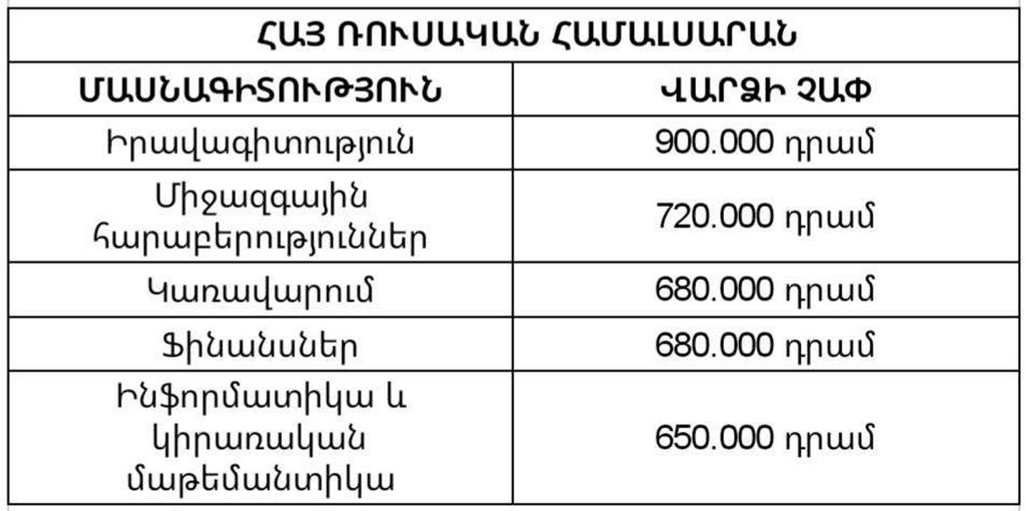Radar Armenia-ն ներկայացնում է Հայաստանի ամենապահանջված 5 բուհերի 2023-24 ուստարվա մասնագիտությունների վարձավճարի չափն առաջին կուրսեցիների համար։
