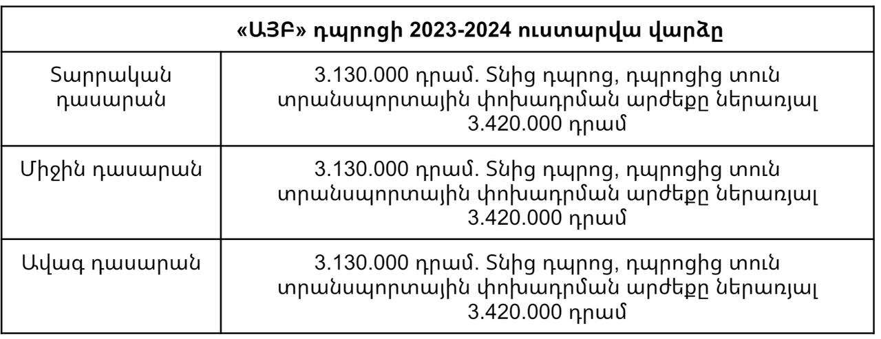 Radar Armenia-ն ձեր ուշադրությանն է ներկայացնում մայրաքաղաքում գործող մասնավոր դպրոցների՝ 2023-2024 ուստարվա վարձավճարները։