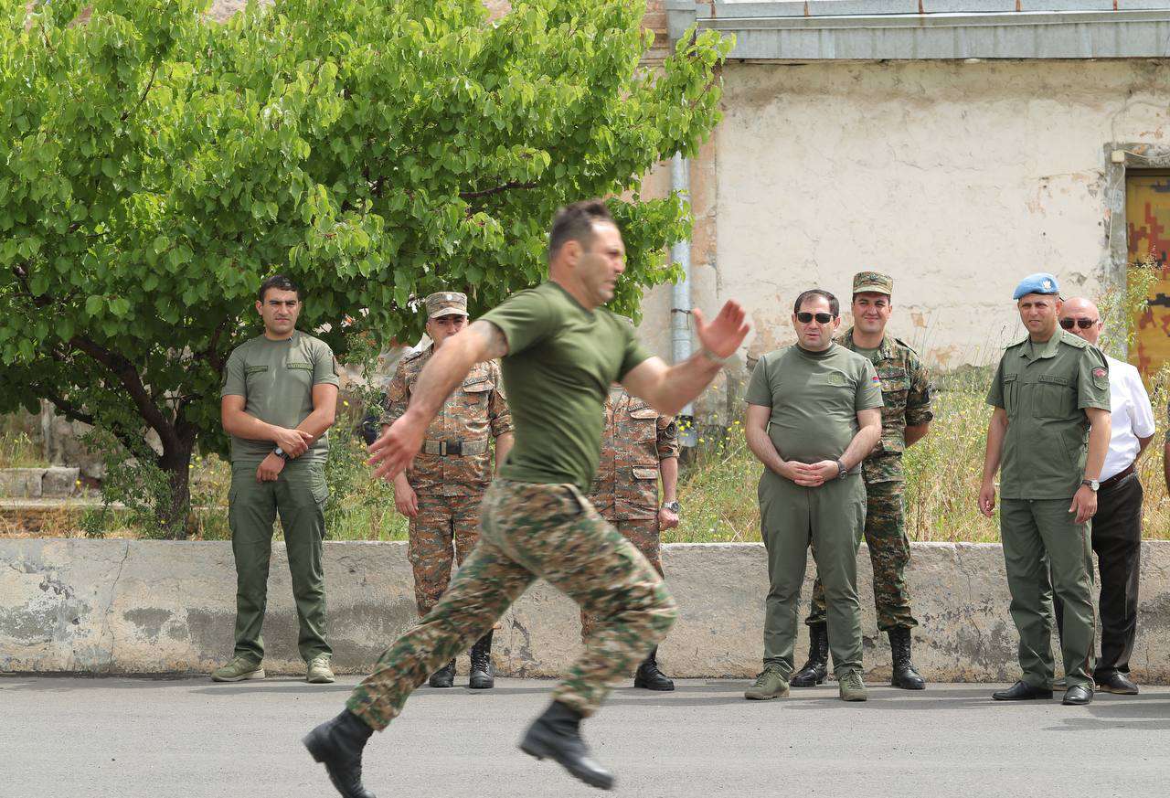 Նախարարի այցի ընթացքում զինծառայողները քննություններ էին հանձնում ֆիզիկական պատրաստություն առարկայից: