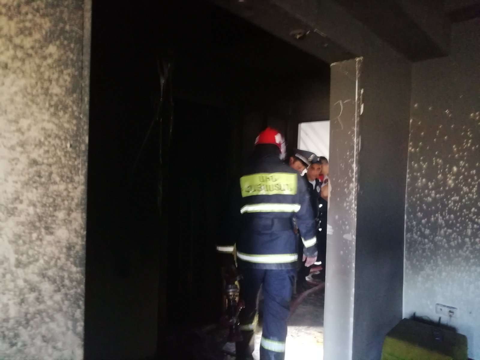 Այրվել են պատշգամբը՝ գույքով, հյուրասենյակի գույքը՝ մասամբ, ջերմահարվել՝ խոհանոցը և լոգարանի կախովի առաստաղը։