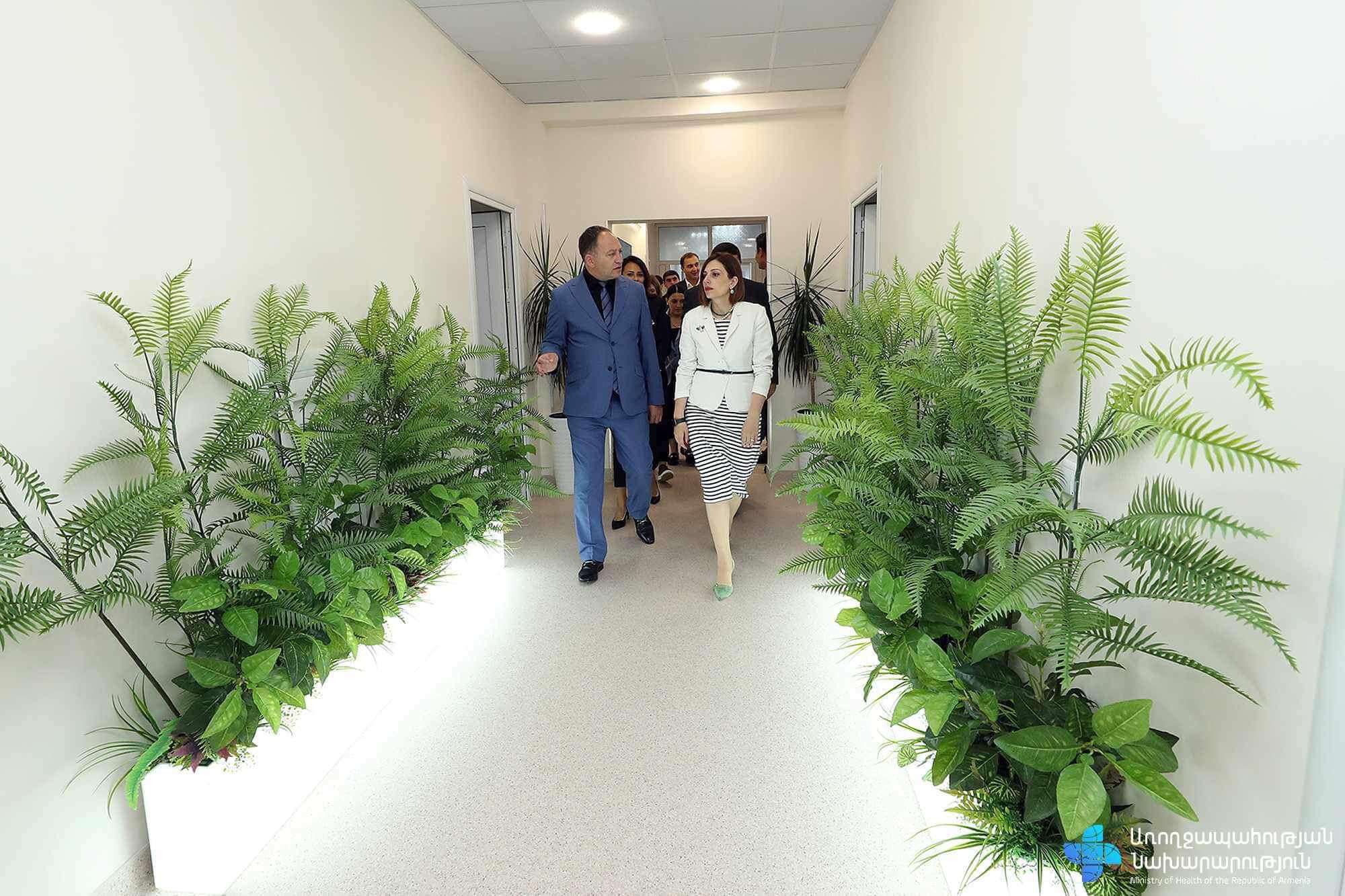 Նախարարը շրջել է նորաբաց բաժանմունքներում, ծանոթացել պայմաններին ու բուժսարքավորումների հագեցվածությանը։ Էնդոսկոպիկ ռինոլոգիական վիրաբուժության բաժանմունքը գործելու է ամբողջական հագեցվածությամբ` վիրահատարաններ, 10 մահճակալ։ Անոթային ու էնդովասկուլյար վիրաբուժության նորաբաց բաժանմունքում բուժծառայություններ են մատուցվելու ոչ միայն քաղցկեղ ունեցող պացիենտներին։