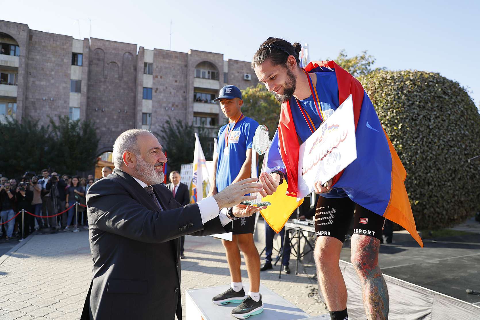 Մենք ուզում ենք նաև մեր այսօրվա մրցանակակիրներին ինչ-որ առումով օրինակ դարձնել մեր երկրի համար, բոլորիս համար, քաղաքացիների համար: Ես անկեղծ ասեմ, երբ մեր 40-ն անց կատեգորիայի տղամարդիկ կանգնած էին պարգևատրման հարթակին, մտքում դա էի մտածում, ասում էի՝ տեսեք ահա ինչպիսի տեսք և կազմվածք պետք է ունենա 40 տարեկանից բարձր տղամարդը: Իհարկե, շատ կարևոր է, շնորհակալ եմ նրանց, որ իրենք նաև այդ հնարավորությունը տալիս են, որպեսզի, ահա, այս հարթակներից այդպիսի ներկայացուցչական կազմով մենք ի ցույց դնենք:
