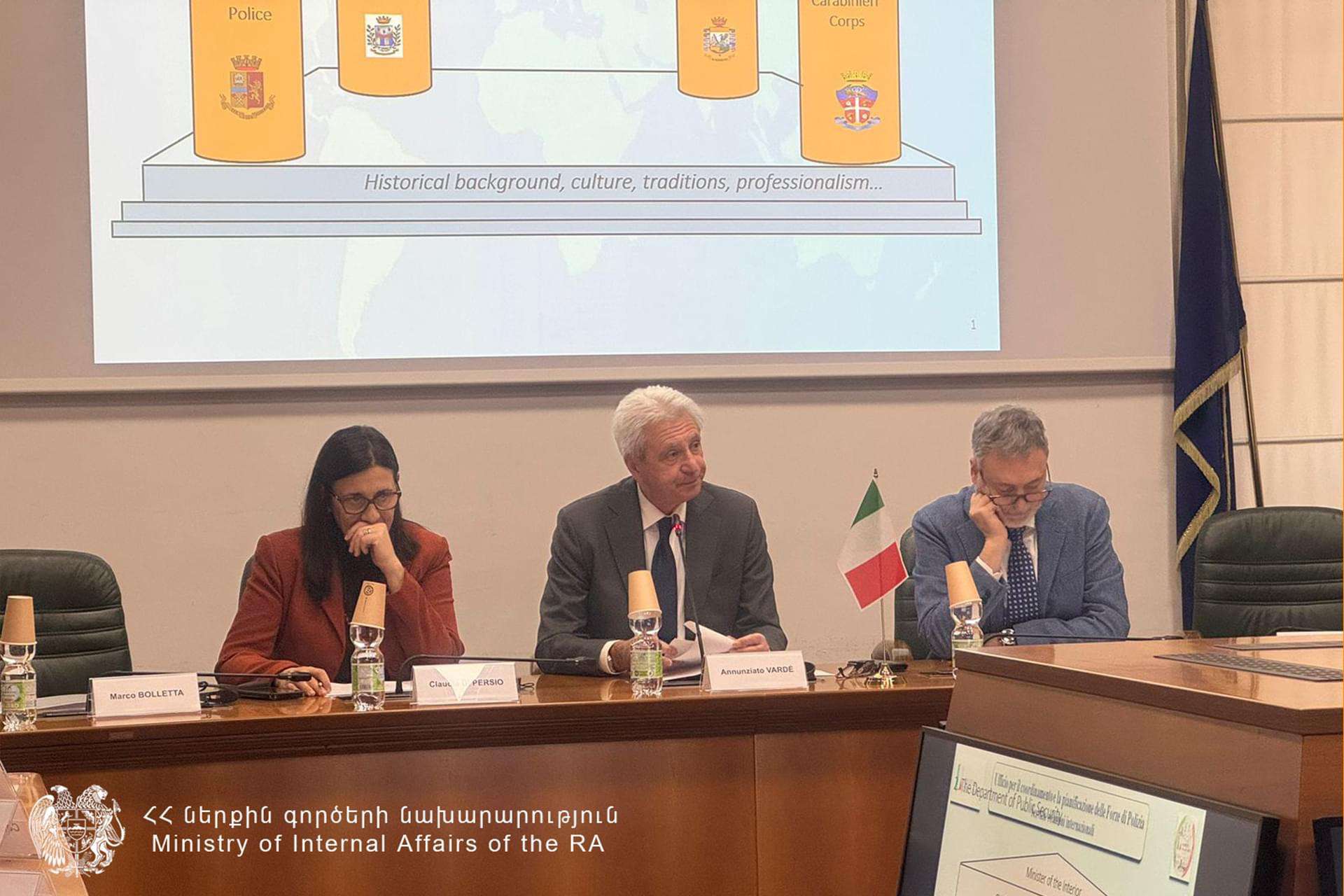 Ոստիկանության պետ Արամ Հովհաննիսյանը շնորհակալություն է հայտնել իտալական կողմին և ի դեմս ԵԱՀԿ-ի՝ միջազգային կազմակերպություններին՝ ՆԳՆ բարեփոխումների գործընթացում մշտական ներգրավվածության և աջակցության համար՝ կարևորել է Իտալիայի Հանրապետության հետ դեռևս 2010 թվականին ստորագրված Հանցավորության դեմ պայքարում համագործակցության վերաբերյալ համաձայնագիրը։ Նա ներկայացրել է ՆԳ նախարարությունում ընթացող բարեփոխումները, նախարարության կառուցվածքը, ռազմավարական հիմնական ուղղությունները։