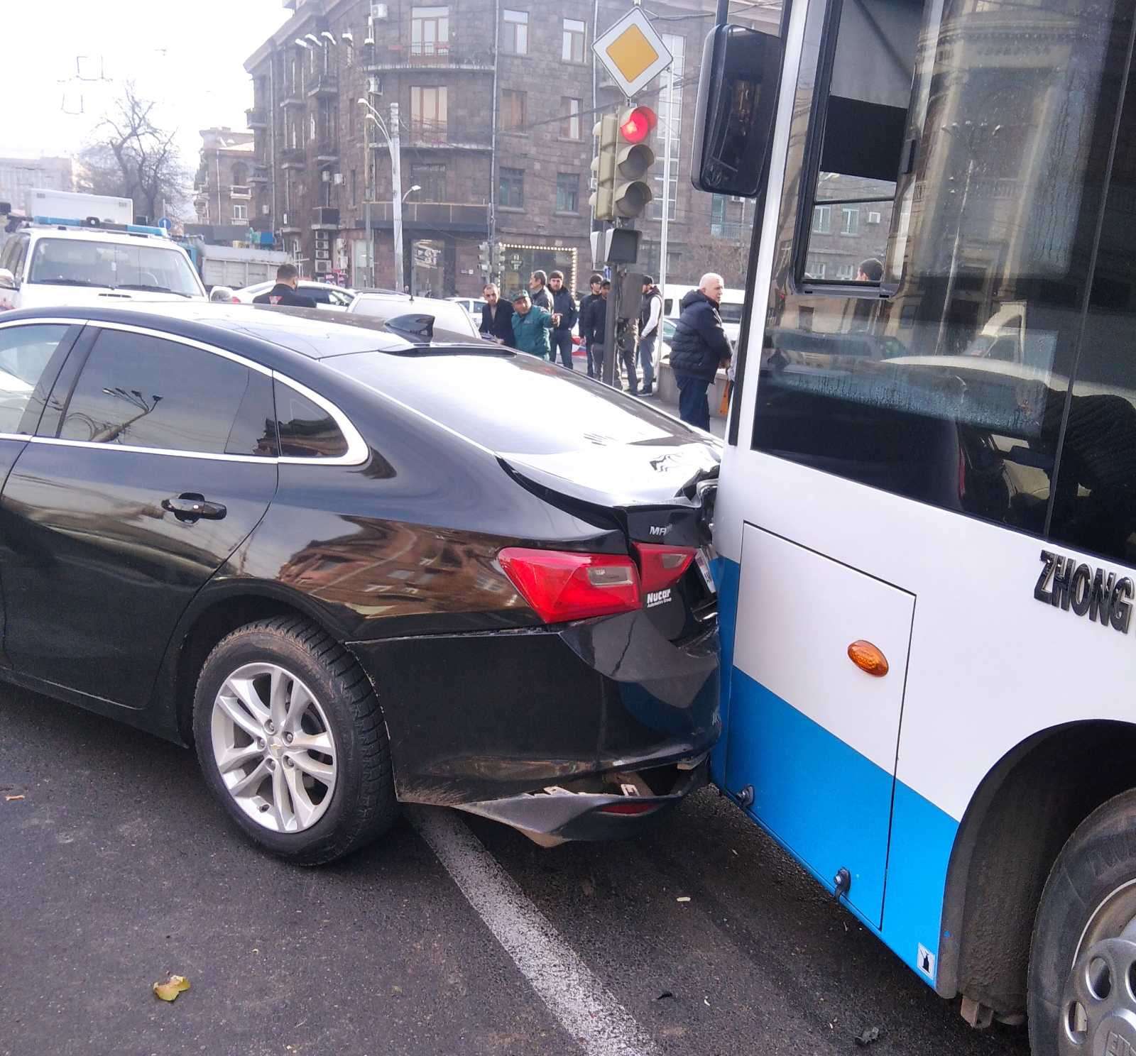 Դեկտեմբերի 15-ին, ժամը 14։03-ին Ճգնաժամային կառավարման ազգային կենտրոն ահազանգ է ստացվել, որ Երևանի Կորյունի և Աբովյան փողոցների խաչմերուկում տեղի է ունեցել ՃՏՊ՝ բախվել են ավտոմեքենաներ և ավտոբուս, կա արգելափակված տուժած․ անհրաժեշտ է փրկարարների օգնությունը։