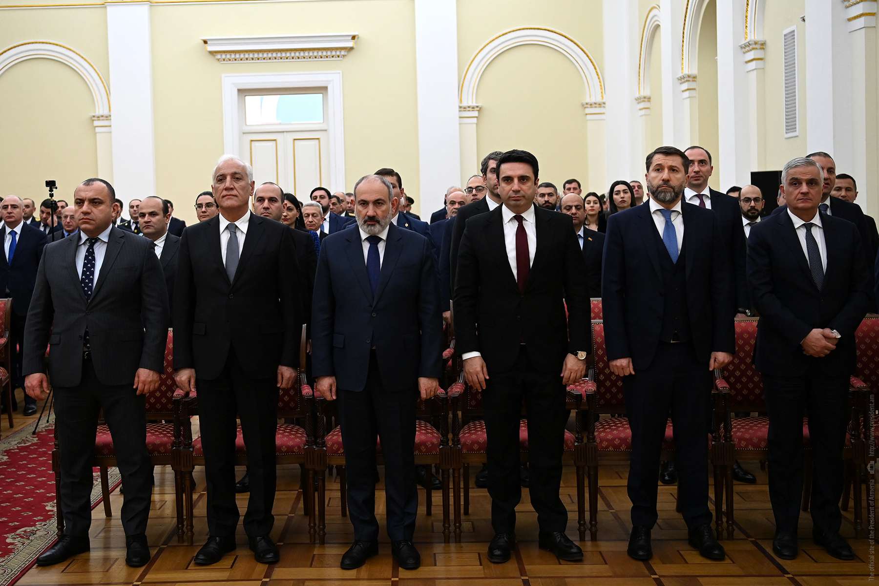 Միջոցառմանը ներկա են գտնվել ՀՀ վարչապետ Նիկոլ Փաշինյանը, ԱԺ նախագահ Ալեն Սիմոնյանը, ՍԴ նախագահ Արման Դիլանյանը, ԲԴԽ նախագահ Կարեն Անդրեասյանը, կառավարության անդամներ և ԱԺ պատգամավորներ: Հանրապետության նախագահը շնորհավորել է բարձր պարգևներ և կոչումներ ստացած գործիչներին և մաղթել հաջողություններ: Նախագահն իր խոսքում ասել է.
