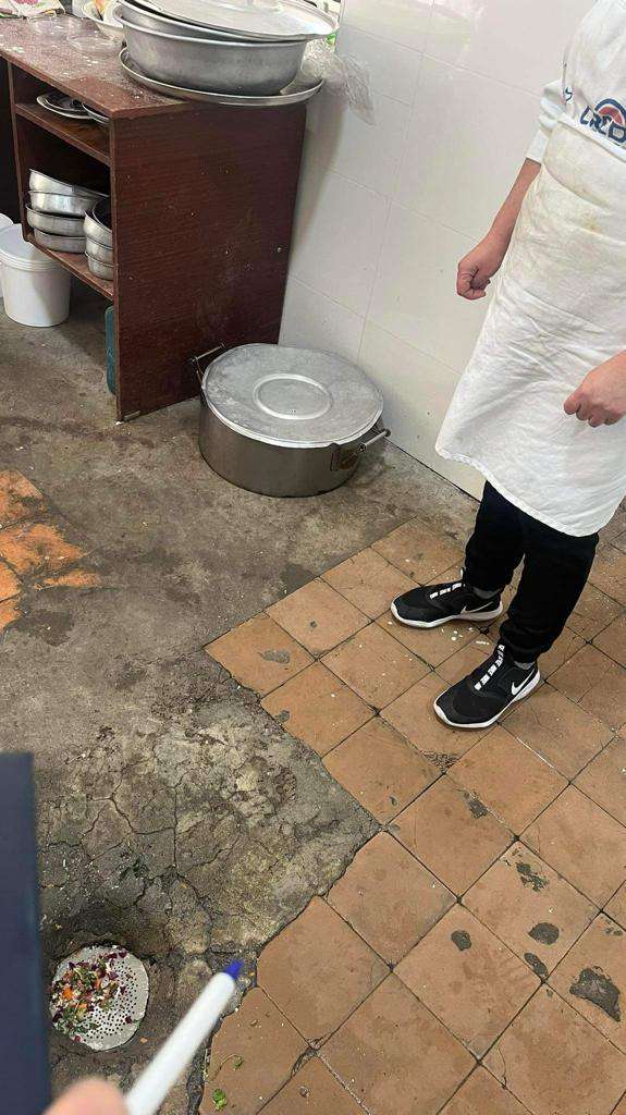 • Ճաշարանում ու խոհանոցում արձանագրվել են սանիտարական նորմերի առերևույթ խախտումներ. տարածքը և խոհանոցում աշխատող անձանց հագուստները կեղտոտ էին, բացակայում էին սանիտարական (բժշկական) գրքույկները։