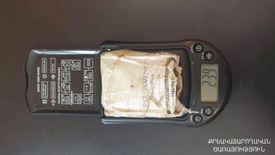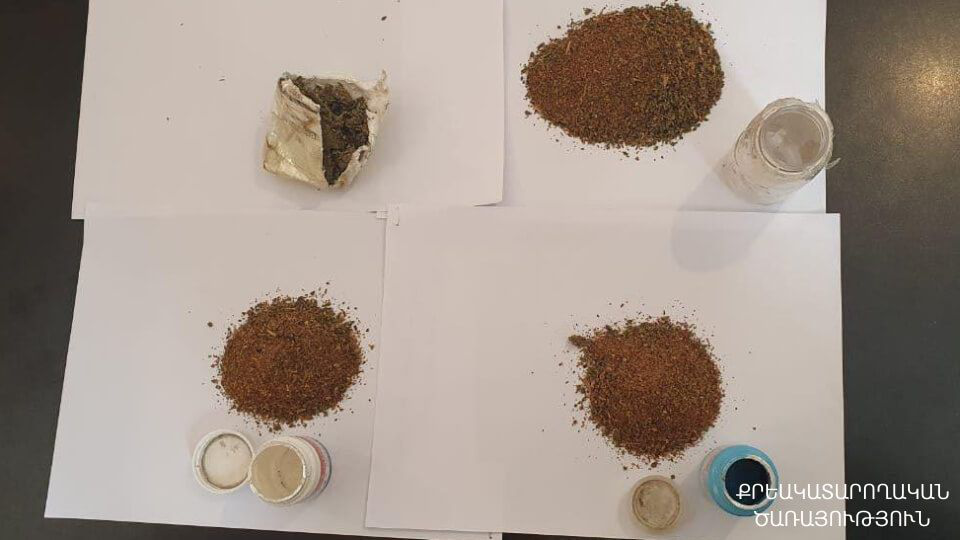 Արդյունքում՝ տանիքում պատրաստված թաքստոցից հայտնաբերվել են պլաստմասե տարաներ, որոնցում առկա են եղել մարիխուանա տեսակի թմրամիջոցին նմանվող, ընդհանուր 65,1 գրամ քաշով, դեղնականաչավուն, չոր առանձնացված զանգվածներ։ Բացի այդ՝ թաքստոցից հայտնաբերվել է ծխախոտի տուփ՝ նույնպես լցված մարիխուանա տեսակի թմրամիջոցին նմանվող, կանաչավուն զանգվածով, որի քաշը տուփի հետ միասին կազմել է 23,9 գրամ։