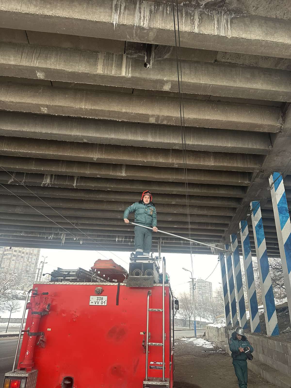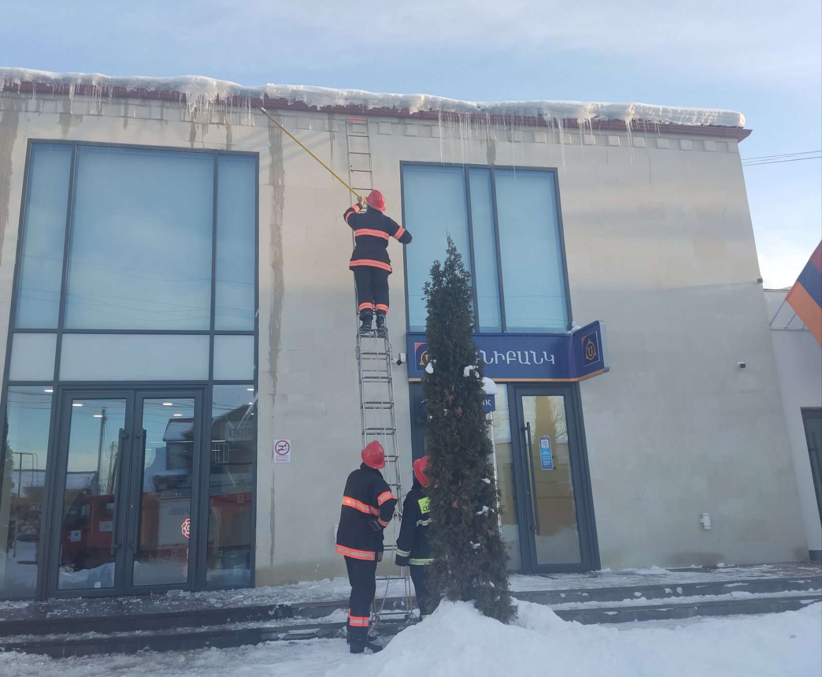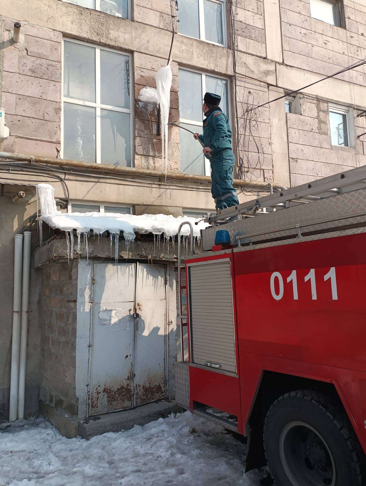 Համագործակցելով ՆԳՆ ոստիկանության պարեկային ծառայության աշխատակիցների, Երևանի քաղաքապետարանի, վարչական շրջանների և մարզային համապատասխան ծառայությունների պատասխանատուների հետ՝ փրկարարներն օպերատիվորեն կազմակերպել և տեխնիկական միջոցների գործադրմամբ 37 հասցեներում իրականացրել են սառցալեզվակների կոտրման և հեռացման աշխատանքներ։
