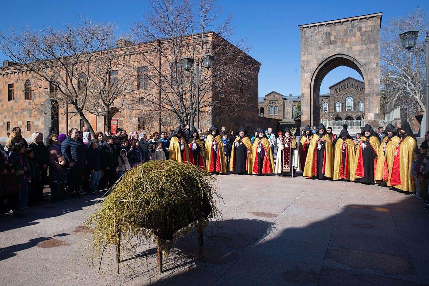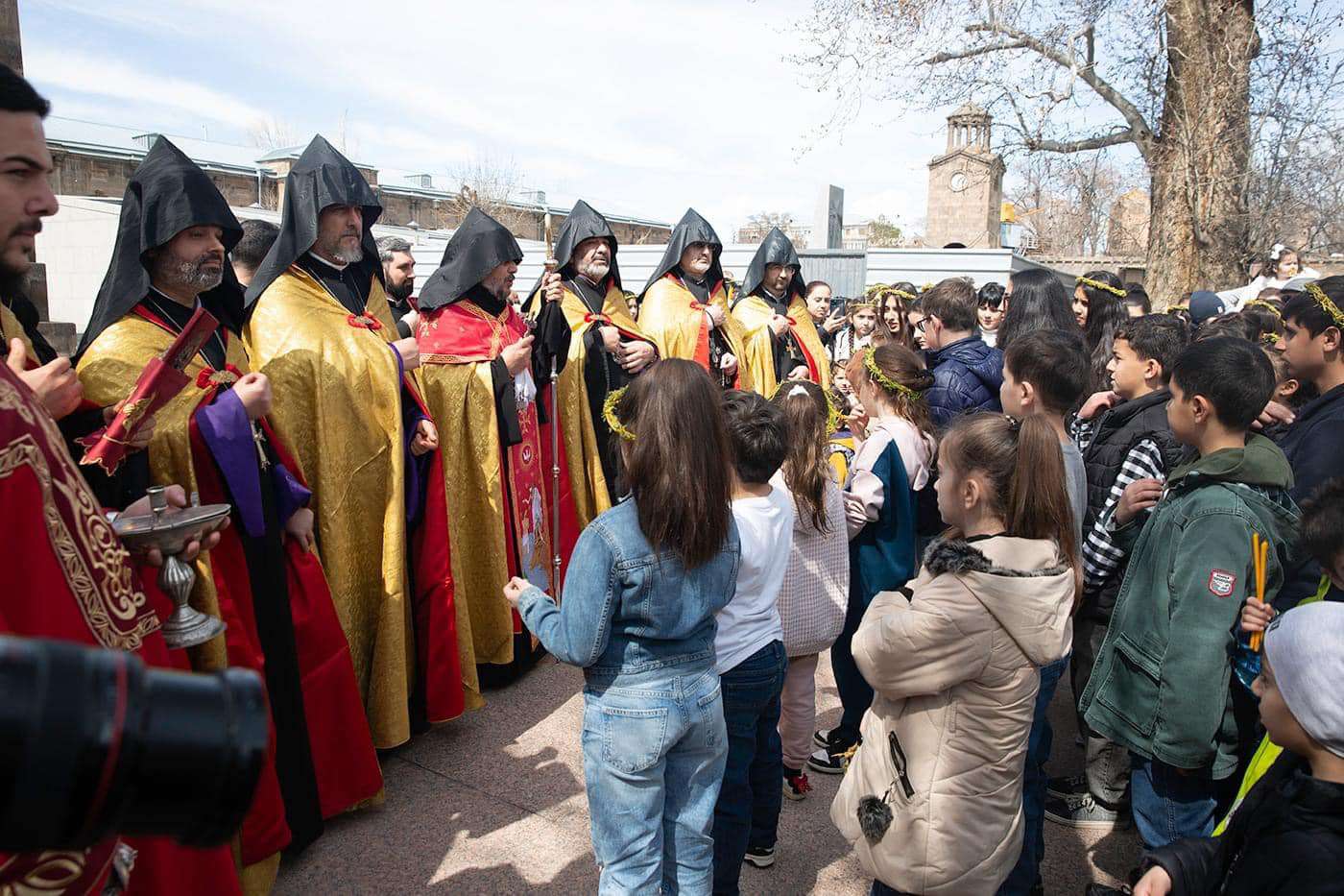 Նորին Սրբությունն իր օրհնությունն է բաշխել Մայր Աթոռում համախմբված մանուկներին, իսկ հավատացյալներին բաժանվել են Անդաստանի ընթացքում օրհնված ուռենու ճյուղերը: Բերկրաշատ տոնի առիթով Մայր Աթոռ Սուրբ Էջմիածնի միաբանությունը Պատարագի սրբազան արարողությանը մասնակցել է Սուրբ Գայանե վանքում: Պատարագիչն էր Գևորգյան հոգևոր ճեմարանի ասպիրանտուրայի բաժնի ղեկավար Գերաշնորհ Տ․ Դանիել եպիսկոպոս Ֆընտըգյանը։