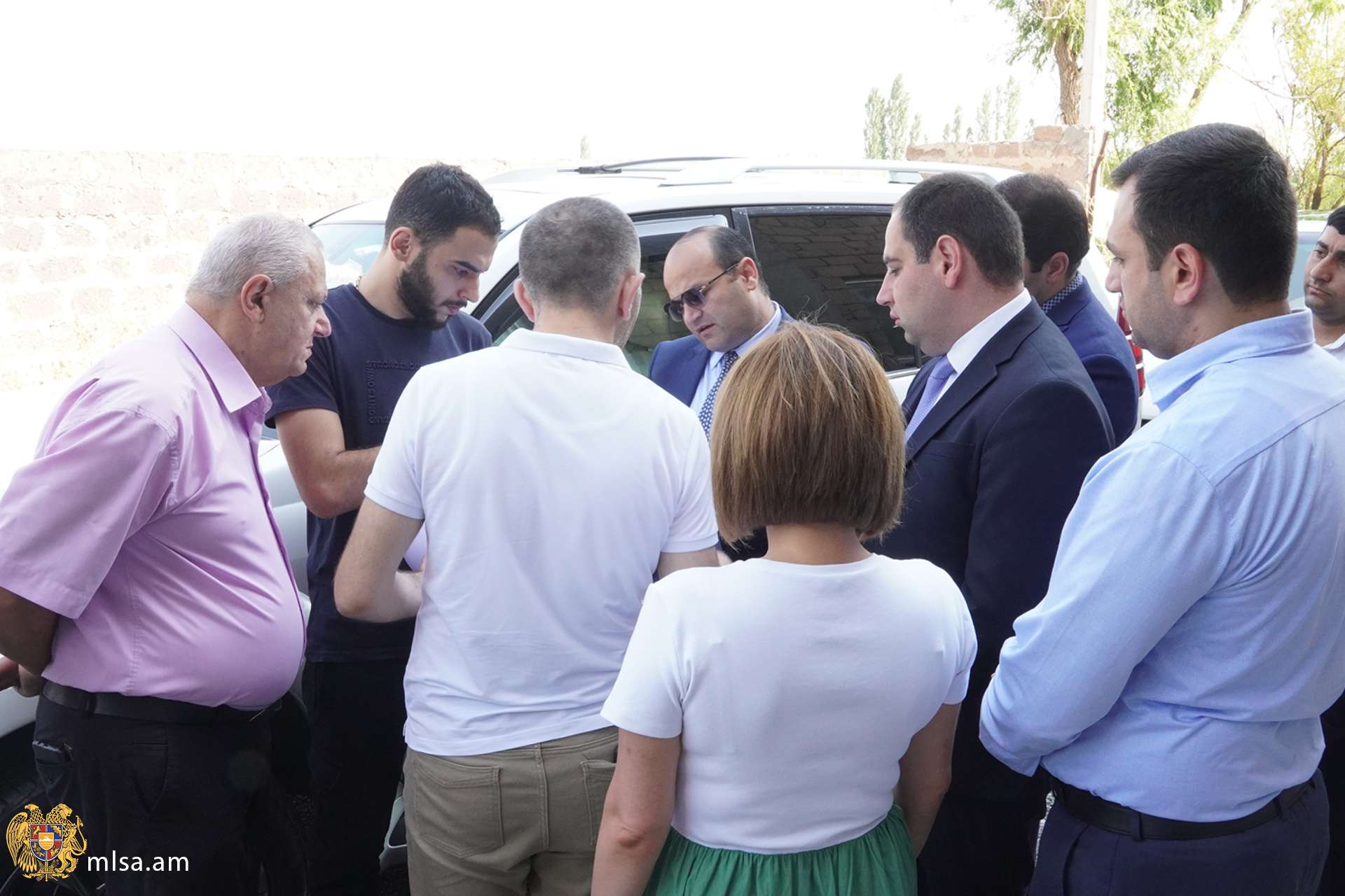 Նախարարն Արմավիրի մարզպետ Դավիթ Խուդաթյանի, Խոյ համայնքի ղեկավար Արգիշտի Մեխակյանի հետ նախ շրջայց է կատարել Գեղակերտի համայնքային փոքր տան տարածքում, ծանոթացել իրականացված վերանորոգման աշխատանքներին, ապա այցելել Ակնաշենում գտնվող փոքր տուն։