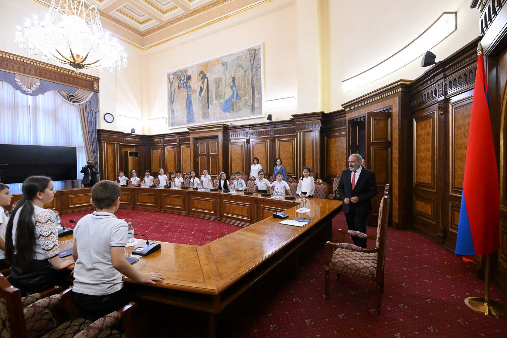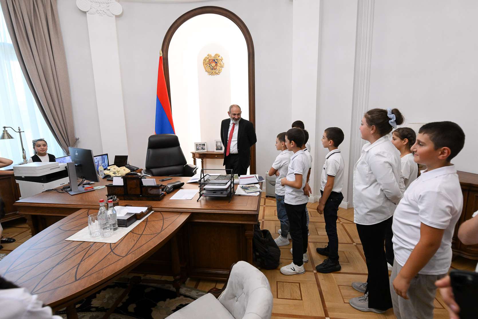 Նիկոլ Փաշինյանը ողջունել է աշակերտներին, զրուցել և պատասխանել է երեխաների հետաքրքրող հարցերին: Այնուհետև՝ Կառավարության ղեկավարն աշակերտներին հրավիրել է իր աշխատասենյակ, ապա նրանց հետ շրջել Կառավարության շենքում՝ նիստերի դահլիճում, հանդիպումների սրահներում: Աշակերտները եղել են նաև գլխավոր ժամացույցի սրահում, որտեղ պահվում են Կառավարության պատմությունը ներկայացնող ցուցանմուշները: