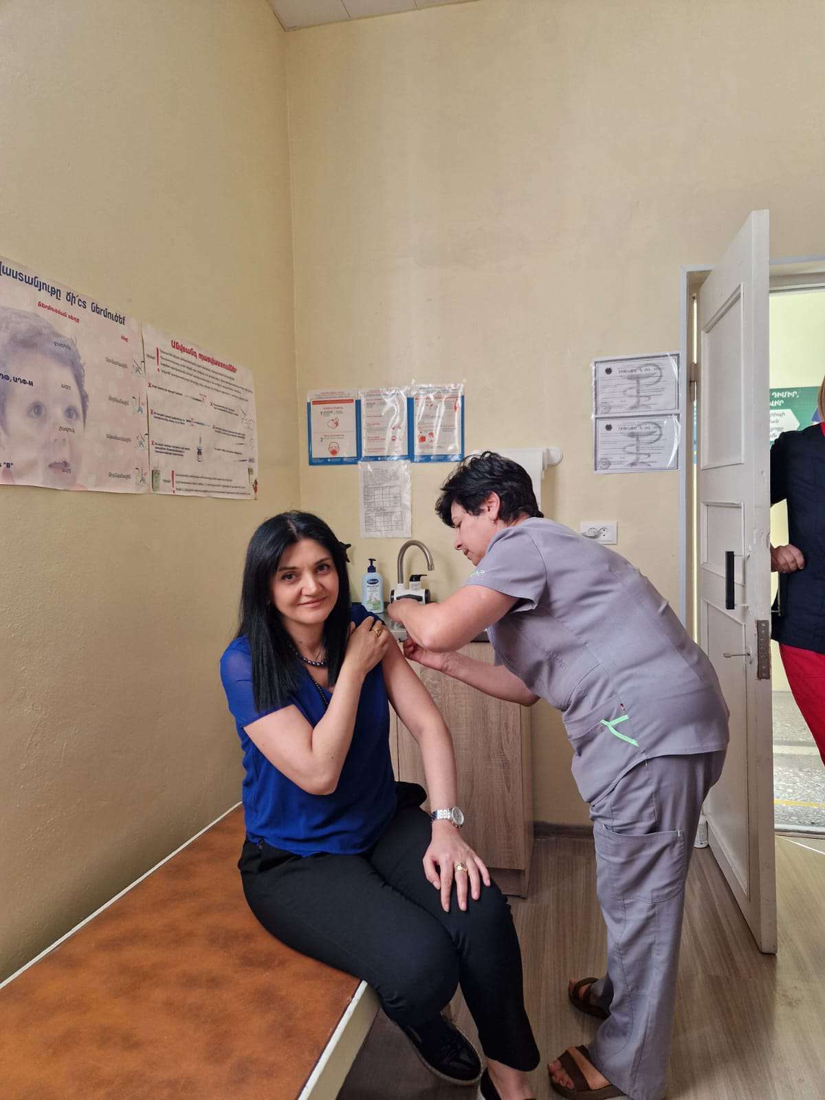 Այցի ընթացքում մեկ անգամ ևս կարևորվեց բուժաշխատողների դերը բնակչության շրջանում պատվաստումների կարևորության մասին իրազեկման և վստահության ամրապնդման գործընթացում: Հենց տեղում` Նոր Հաճընի պոլիկլինիկայում, սեզոնային գրիպի դեմ պատվաստվեցին նախարարի առաջին տեղակալ Լենա Նանուշյանը և «Հիվանդությունների վերահսկման և կանխարգելման ազգային կենտրոն» ՊՈԱԿ-ի գլխավոր տնօրեն Ստեփան Աթոյանը:
