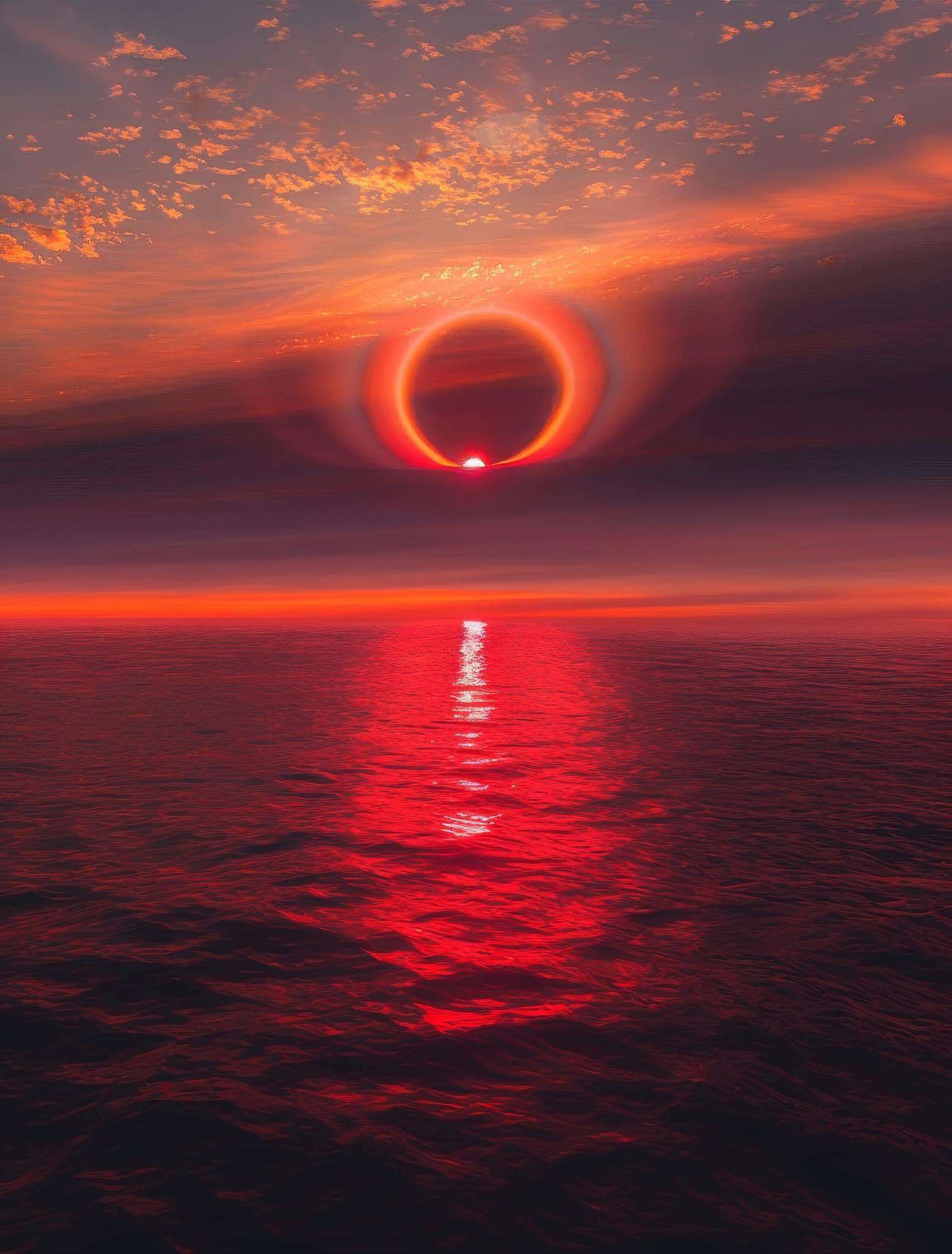 Հազվագյուտ արևային հալո, որը նկարված է արեւածագի ժամանակ։