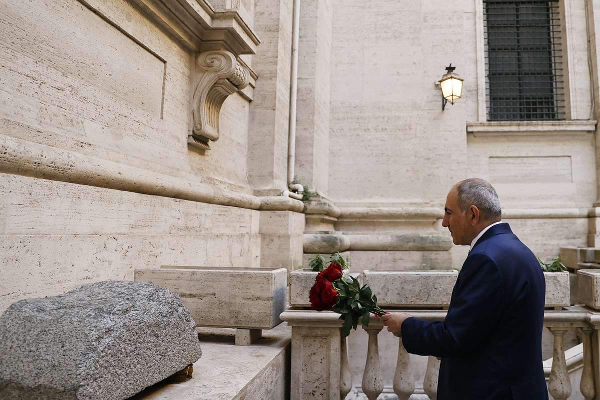 Շրջայցի ընթացքում վարչապետը տիկնոջ հետ ծաղիկներ է խոնարհել Գրիգոր Լուսավորչի և Գրիգոր Նարեկացու արձանների մոտ: