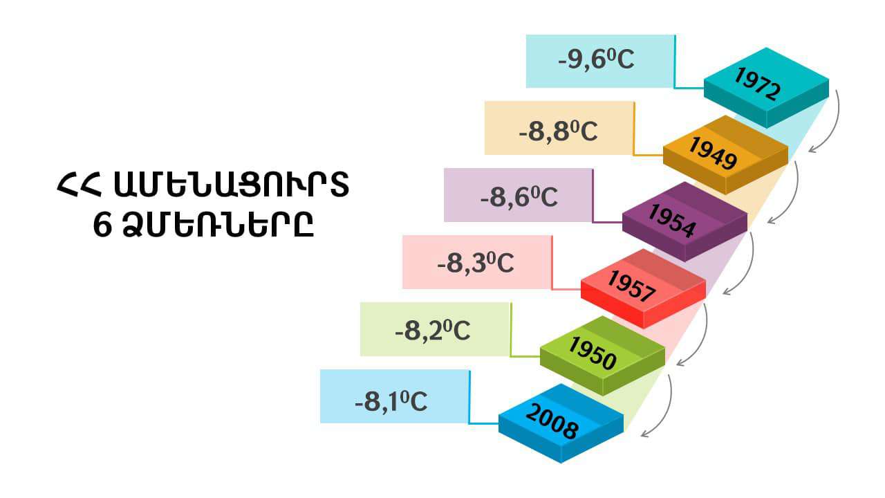 ՀՀ-ում դիտարկումների պատմության ընթացքում(1935-2024թթ) ամենացուրտ 6 ձմեռները ըստ ՇՄՆ «Հիդրոօդերևութաբանության և մոնիթորինգի կենտրոն» ՊՈԱԿ-ի ներկայացված է ստորև։