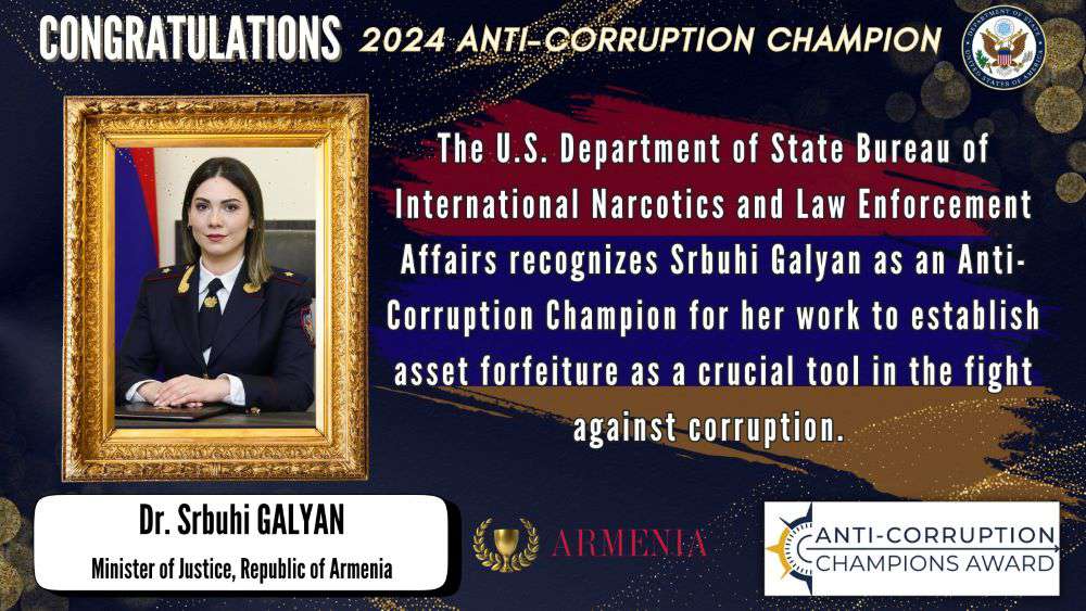 ԱՄՆ Պետքարտուղարության Թմրամիջոցների դեմ պայքարի և իրավապահ համագործակցության բյուրոն Սրբուհի Գալյանին ճանաչում է որպես կոռուպցիայի դեմ պայքարի առաջամարտիկ՝ ապօրինի ծագում ունեցող գույքի բռնագանձումը որպես կոռուպցիայի դեմ պայքարի կարևորագույն գործիք կիրառելու համար»: