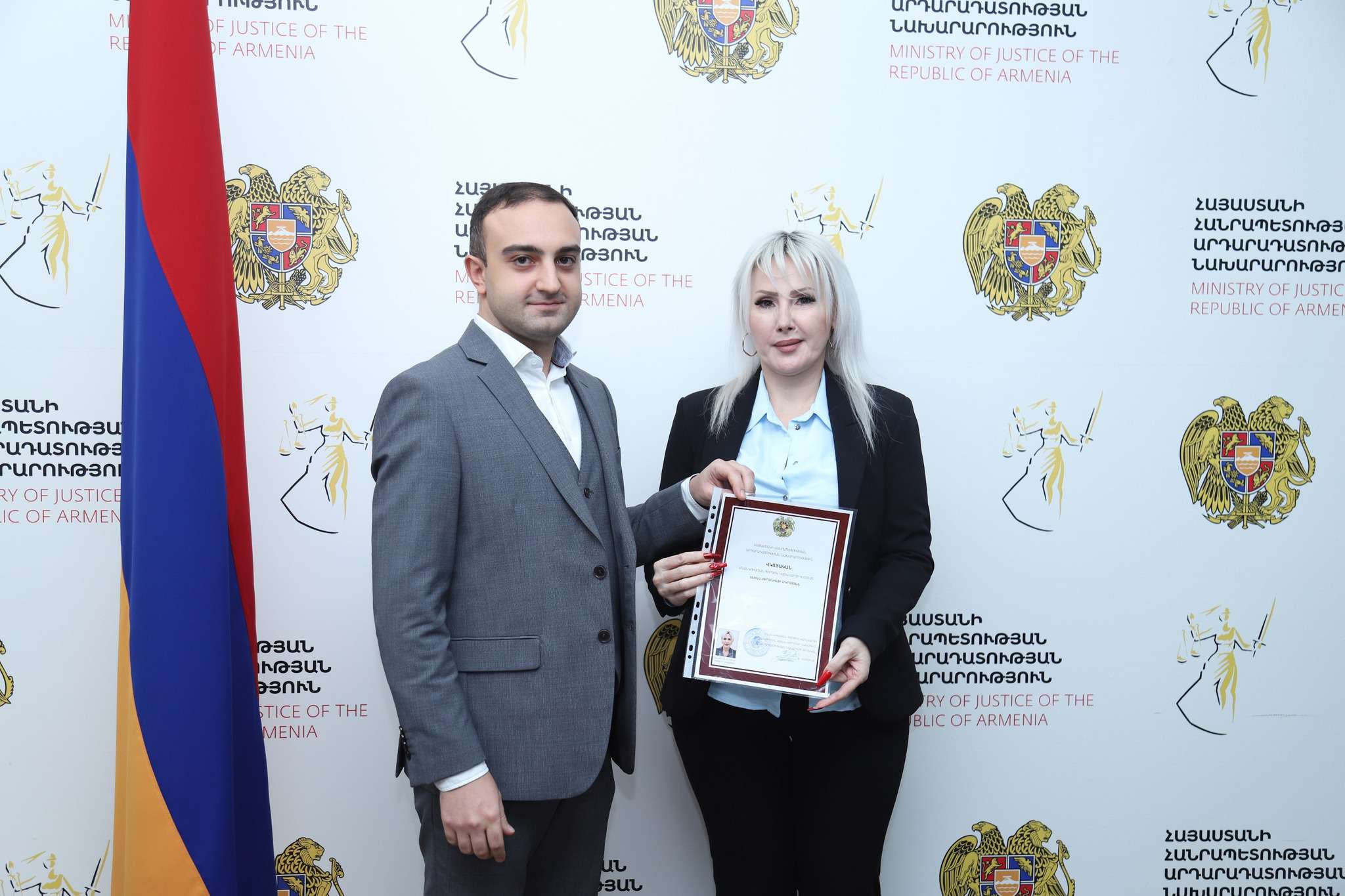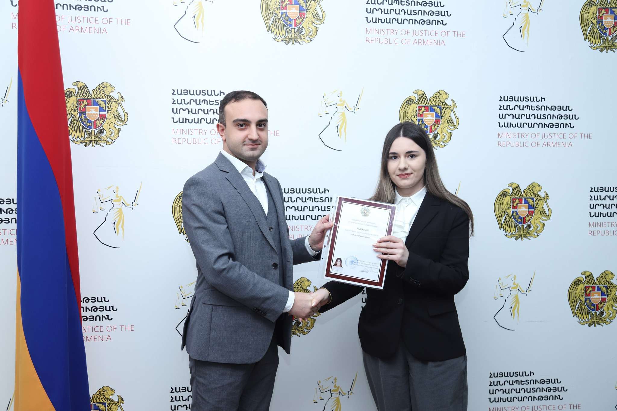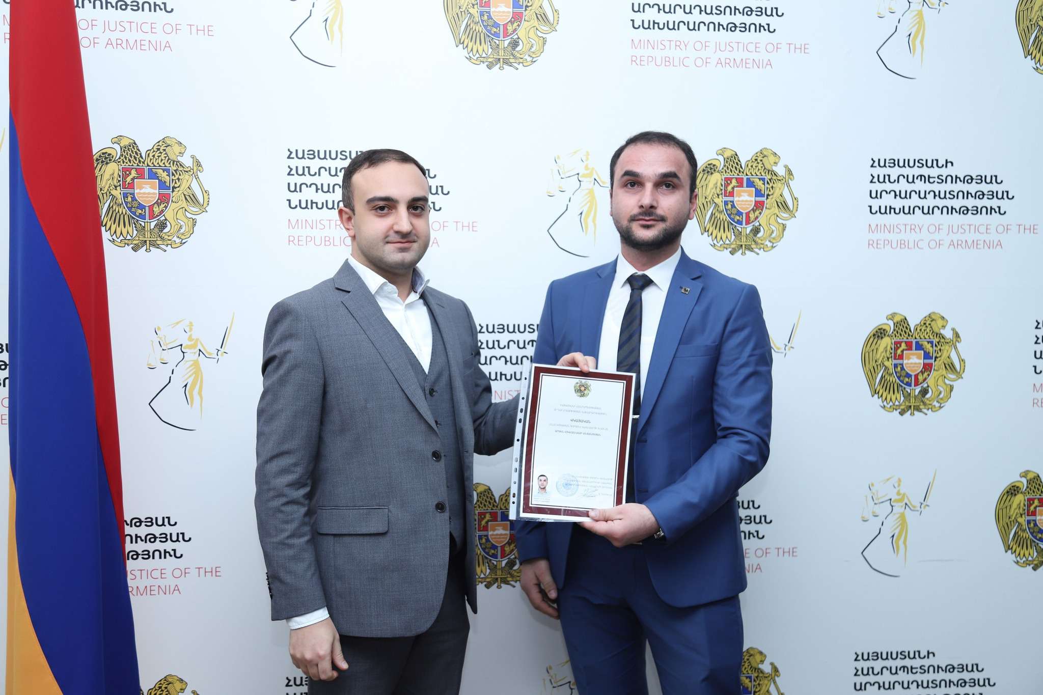 «Արդարադատության նախարարի տեղակալ Տիգրան Դադունցը շնորհավորել և վկայականներ է հանձնել սնանկության գործով կառավարչի որակավորման երկփուլ ստուգումը հաղթահարած 11 անձի: Նախարարի տեղակալը հաջողություններ է մաղթել նրանց, ակնկալելով, որ նրանք մեծ ներդրում կունենան մասնագիտական ոլորտի կատարելագործման գործում։
