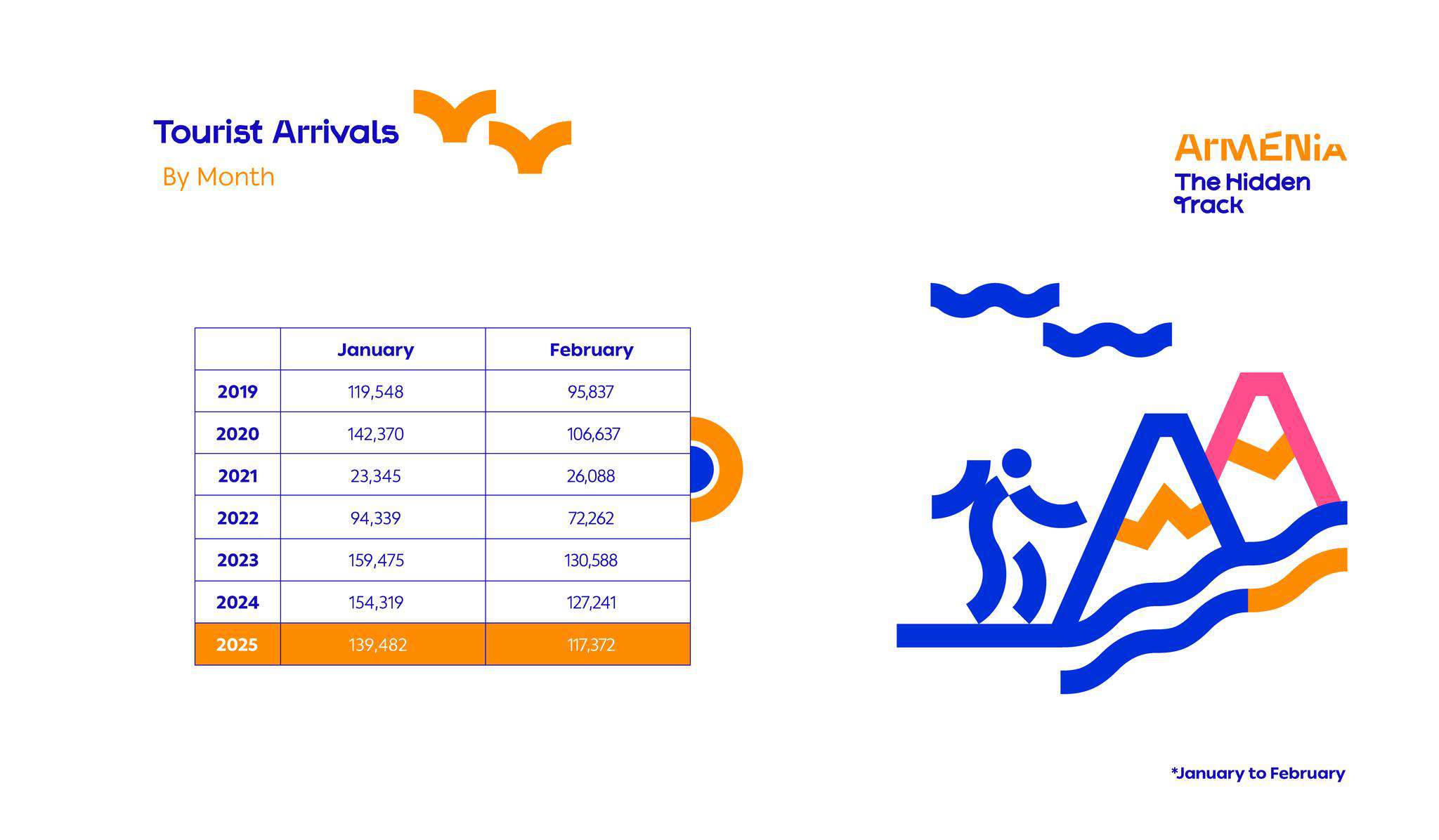 ՀՀ զբոսաշրջության կոմիտեն ներկայացրել է 2025 թվականի փետրվարին դեպի Հայաստան զբոսաշրջային այցելությունների թիվը։