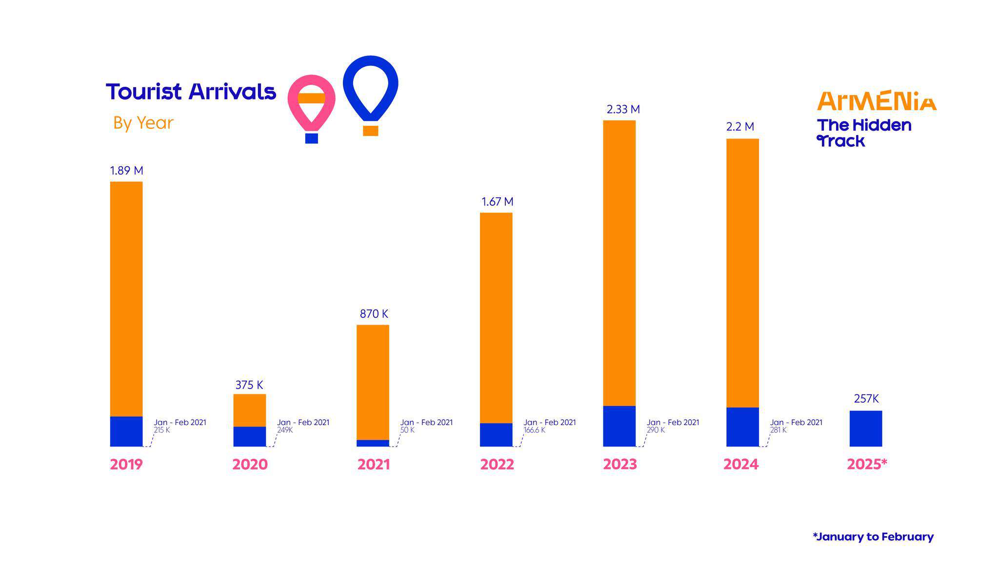 Նախորդող տարում զբոսաշրջային այցելությունների թիվը կազմել է 2024թ․ փետրվարին՝ 127,241։