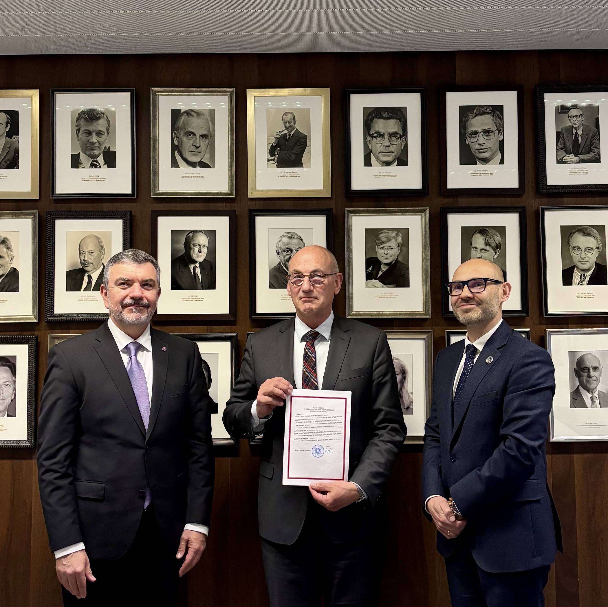 2025թ. ապրիլի 23-ին Հայաստանի Հանրապետությունը 1899 թվականի և 1907 թվականի «Միջազգային վեճերի խաղաղ կարգավորման մասին» կոնվենցիաներին միանալու վերաբերյալ վավերագրերն է հանձնել նշյալ կոնվենցիաների ավանդապահին, այն է՝ Նիդերլանդների արտաքին գործերի նախարարությանը։ Այսպիսով, կոնվենցիաների ուժի մեջ մտնելուց հետո Հայաստանի Հանրապետությունը կդառնա Մշտական արբիտրաժային դատարանի 125-րդ պայմանավորվող կողմը։
