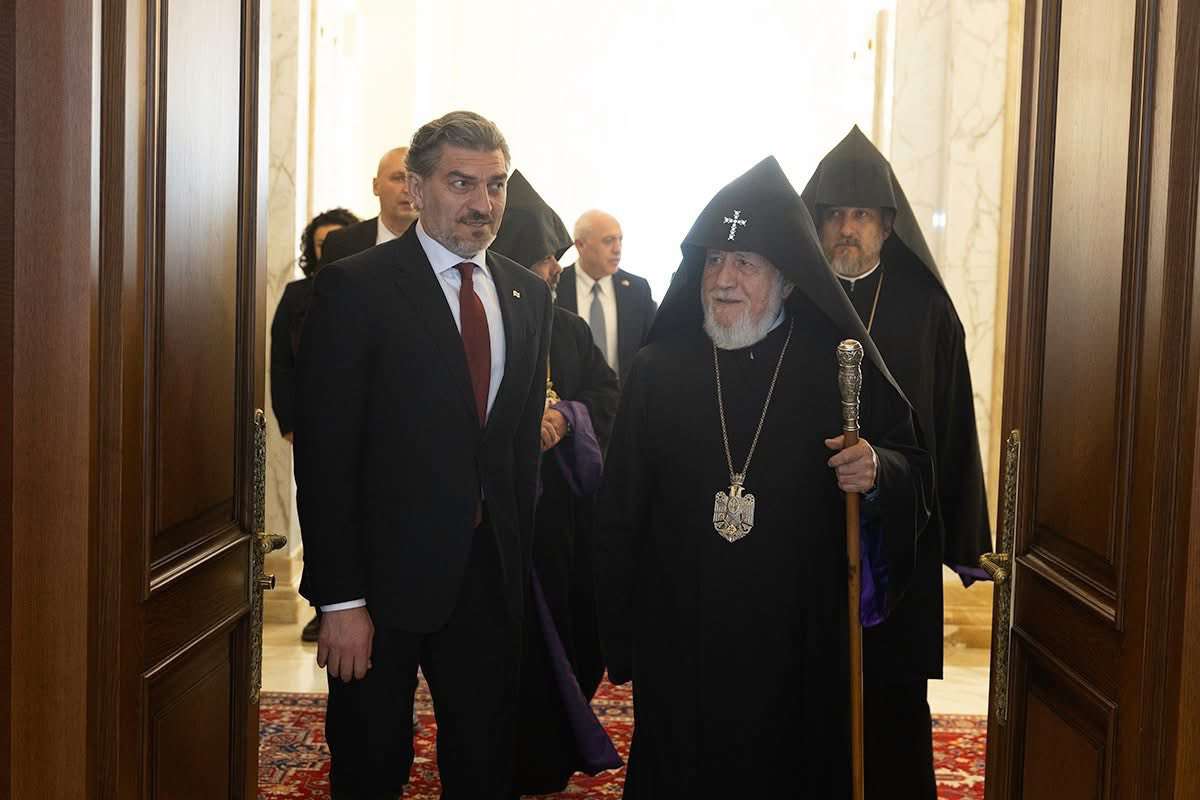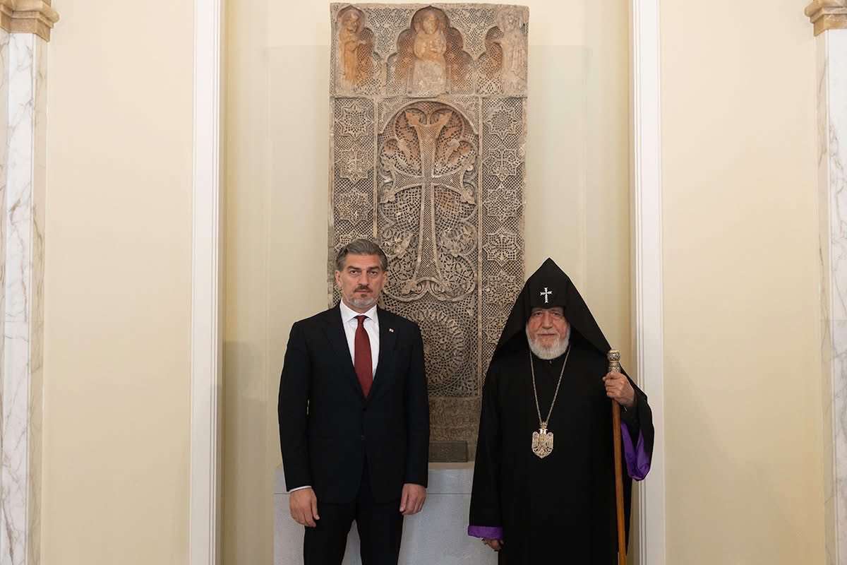 Ողջունելով նախագահի այցը Հայաստան և Մայր Աթոռ Սուրբ Էջմիածին` Հայոց Հայրապետն անդրադարձել է երկու ժողովուրդների դարավոր բարեկամությանը։ Այս առնչությամբ Նորին Սրբությունը նկատել է, որ պատմության ընթացքում հայ և վրաց ժողովուրդները, ապավինած իրենց քրիստոնեական հավատքին ու արժեհամակարգին, կարողացել են հաղթահարել բազմաթիվ դժվարություններ և փորձություններ՝ պահպանելով իրենց ազգային ինքնությունն ու դիմագիծը: