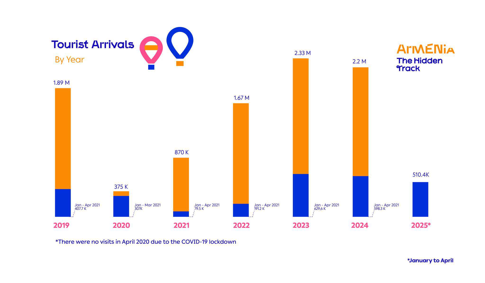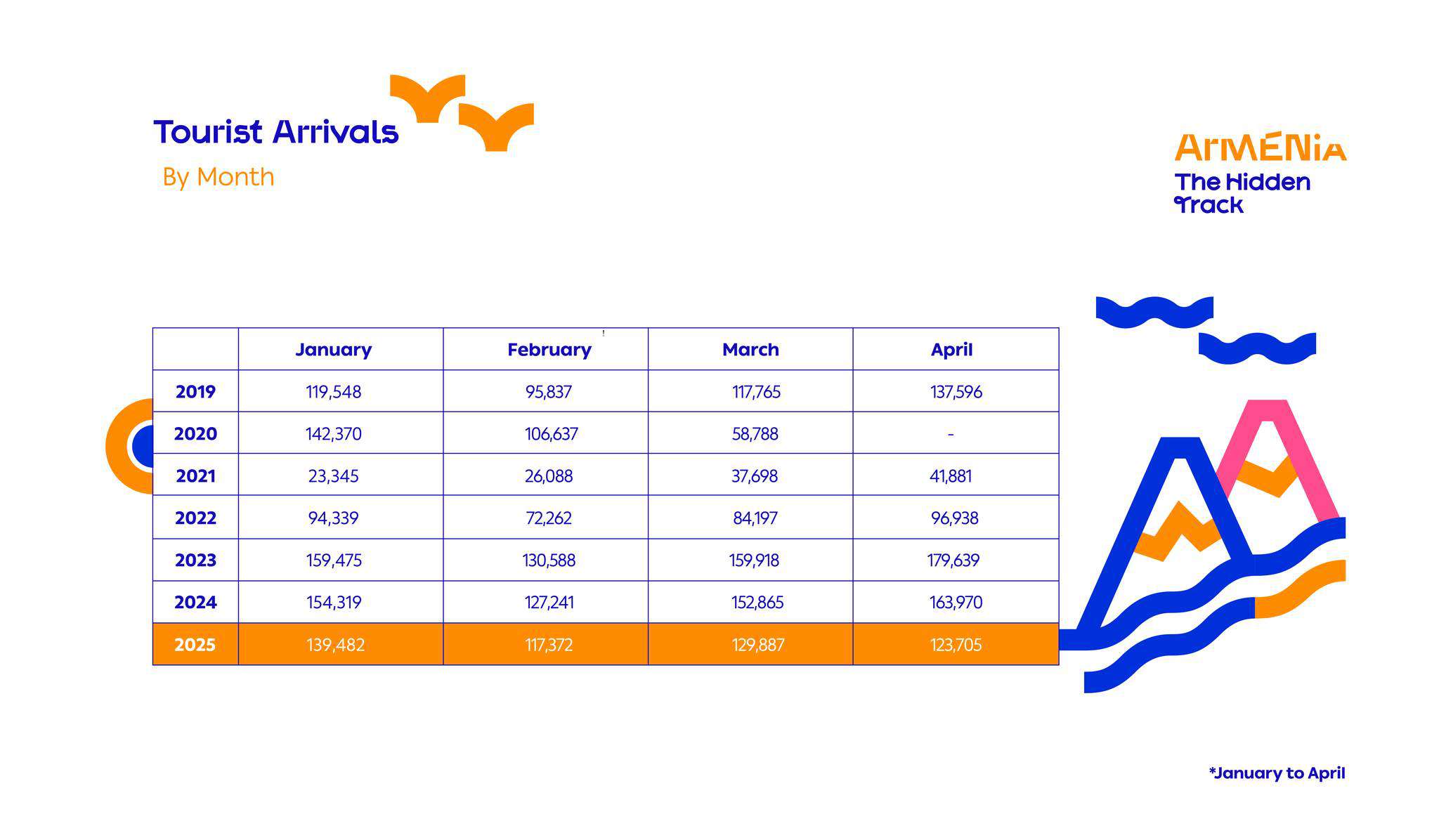 ՀՀ զբոսաշրջության կոմիտեն ներկայացնում է 2025 թվականի ապրիլին դեպի Հայաստան զբոսաշրջային այցելությունների թիվը։