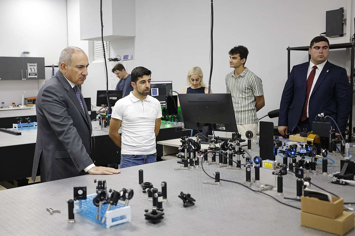 Վարչապետը նախ եղել է ԵՊՀ ֆիզիկայի ինստիտուտի օպտիկայի և ֆոտոնիկայի կենտրոնում, որի վերազինման աշխատանքներն իրականացվել են ՀՀ բարձրագույն կրթության և գիտության կոմիտեի, Նորարարությունների մրցակցային հիմնադրամի և Երևանի պետական համալսարանի ֆինանսավորման շրջանակներում։