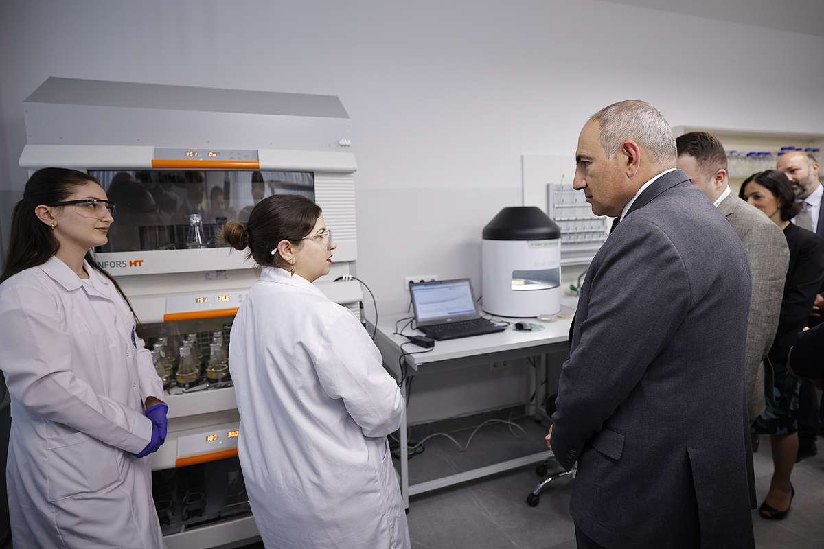 Հաջորդիվ՝ Նիկոլ Փաշինյանը շրջայց է կատարել ԵՊՀ կենսաբանության ֆակուլտետի լաբորատորիաներում: Վարչապետին ներկայացվել են մանրէների նյութափոխանակության լաբորատորիան, մանրէաբանական կենսատեխնոլոգիաների և կենսավառելիքի նորարարական կենտրոնը, Փորձարարական ախտաբանության և բջջային ազդանշանի փոխանցման գիտական լաբորատորիան: