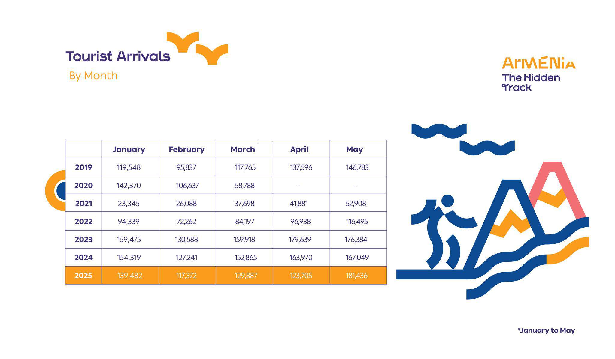 ՀՀ զբոսաշրջության կոմիտեն ներկայացնում է 2025 թվականի մայիսին դեպի Հայաստան զբոսաշրջային այցելությունների թիվը։