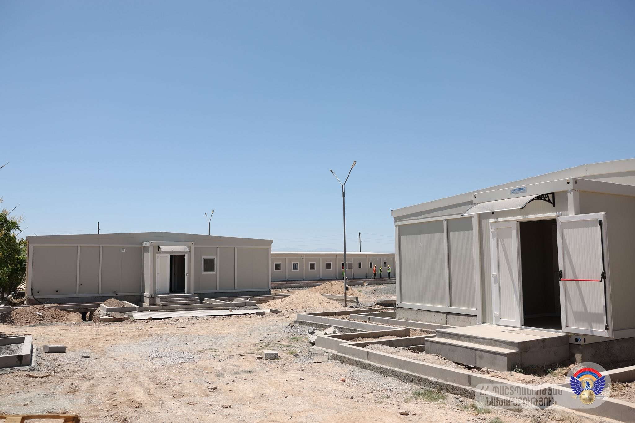 Նախարար Պապիկյանն այցելել է նաև մոդուլային տիպի զորամասերից մեկի շինհրապարակ։ Նա տեղում հետևել է ավարտական փուլում գտնվող շինարարական աշխատանքներին, շրջել տարածքում և ծանոթացել մոդուլային կացարանների ընձեռած հնարավորություններին ու կենցաղային պայմաններին։