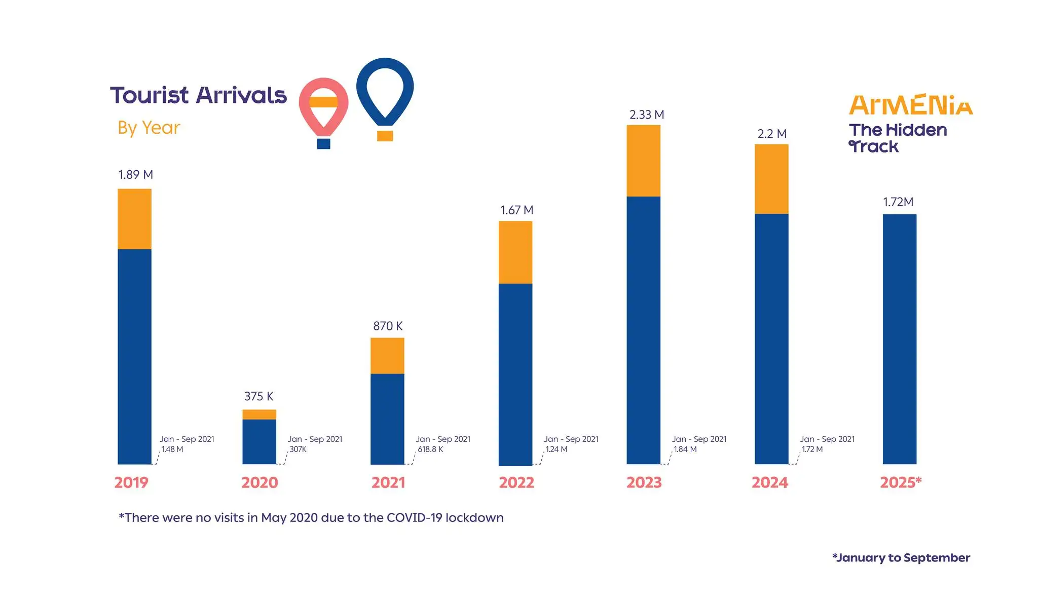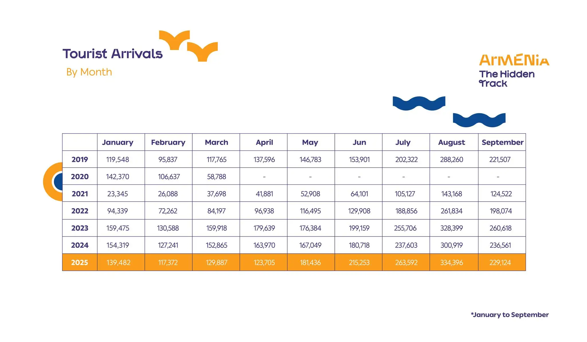 ՀՀ Զբոսաշրջության կոմիտեն ներկայացնում է 2025 թվականի սեպտեմբերին դեպի Հայաստան զբոսաշրջային այցելությունների թիվը։