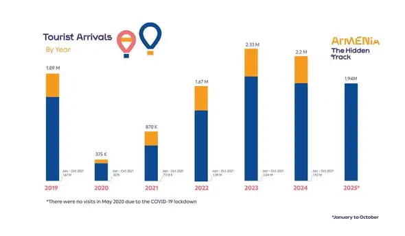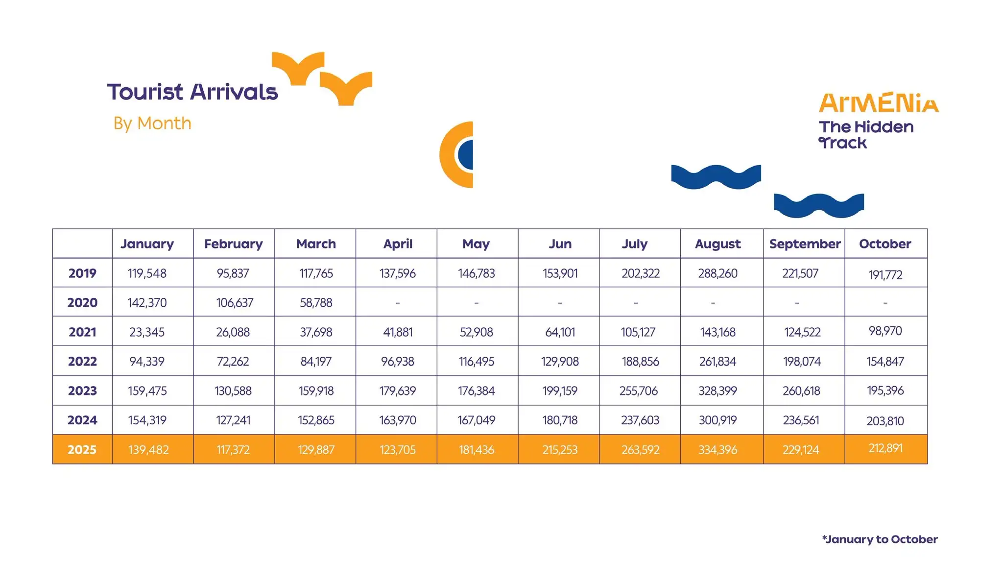 ՀՀ Զբոսաշրջության կոմիտեն ներկայացնում է 2025 թվականի հոկտեմբերին դեպի Հայաստան զբոսաշրջային այցելությունների թիվը։