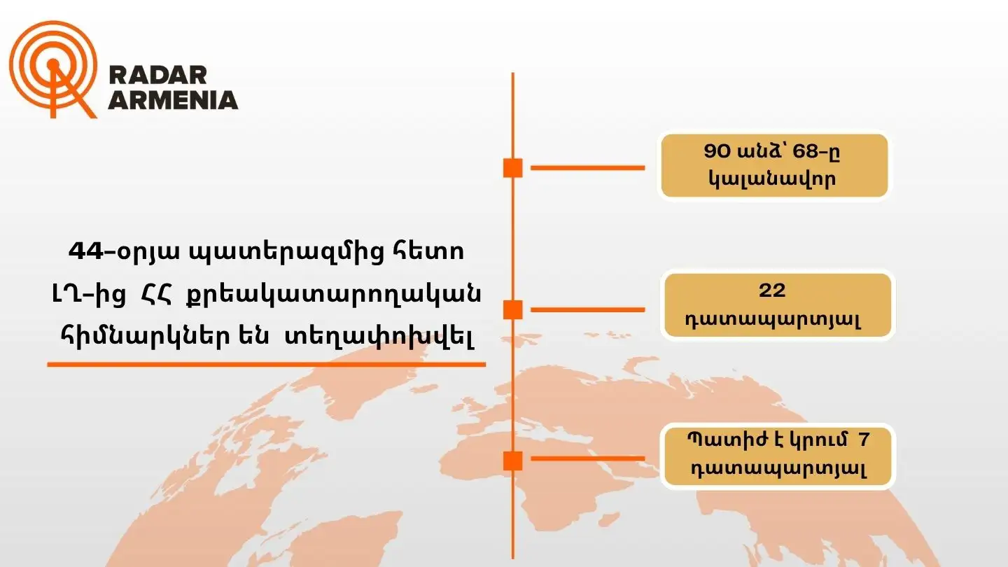 «2020թ. 44-օրյա պատերազմից հետո Լեռնային Ղարաբաղից Հայաստանի քրեակատարողական հիմնարկներ է տեղափոխվել 90 անձ»,-ի պատասխան Radar Armenia-ի գրավոր հարցման՝ տեղեկացրել են ՀՀ արդարադատության նախարարությունից։