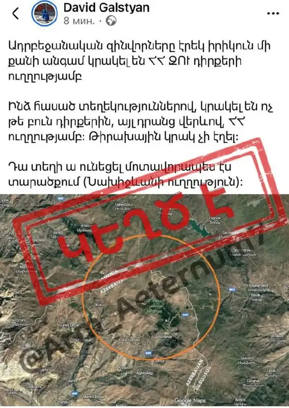 ՀՀ ՊՆ մամուլի խոսնակ Արամ Թորոսյանը հերքել է սոցցանցերում տարածված տեղեկությունները, թե Ադրբեջանական ԶՈՒ-ն անկանոն կրակոցներ է արձակել ՀՀ դիրքերի ուղղությամբ։