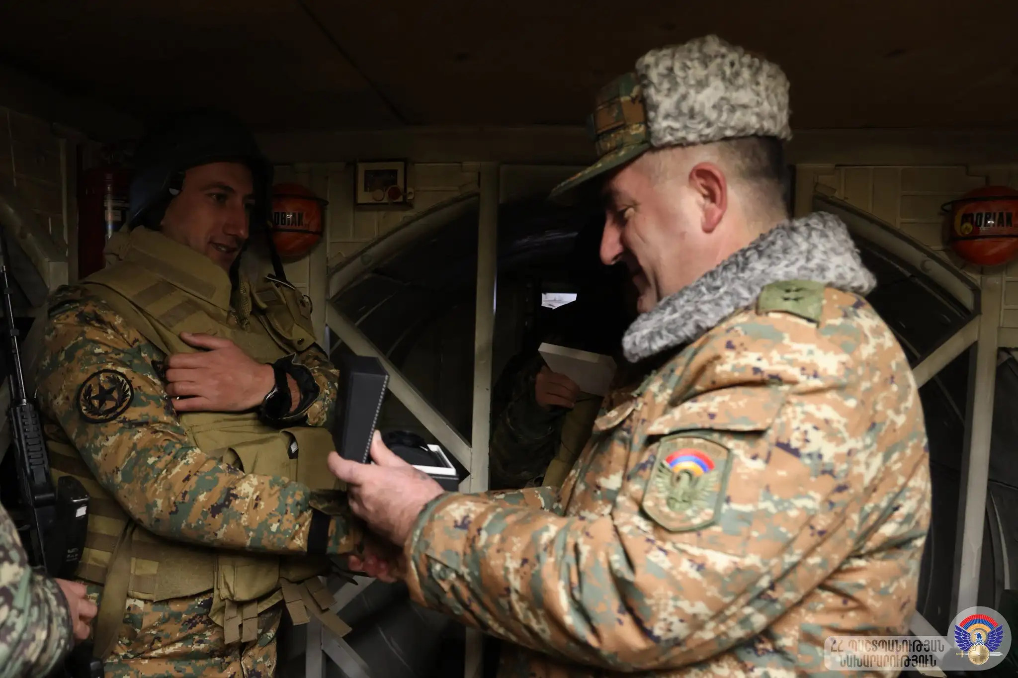ՀՀ պաշտպանության նախարարի 1-ին տեղակալ, ԶՈՒ ԳՇ պետ, գեներալ-լեյտենանտ Էդվարդ Ասրյանը գալիք տոների կապակցությամբ անձնակազմին շնորհավորելու նպատակով այցելել է հանրապետության արևելյան սահմանագոտի: