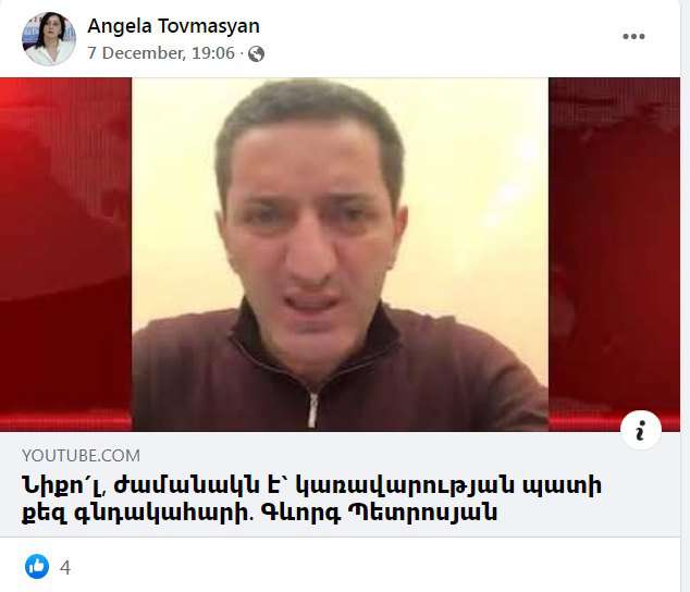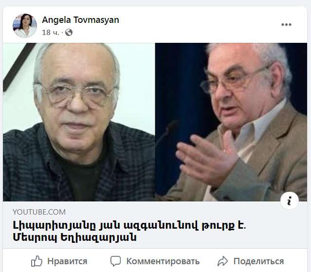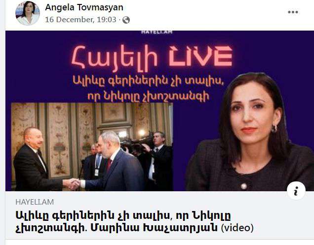 «Ստիպված եմ հրապարակավ արձագանքել (առաջին և, հուսով եմ, վերջին անգամ) «Հայելի ակումբի» ղեկավարի կողմից իմ հասցեին հաճախակի հնչող վիրավորանքներին ու մեղադրանքներին (կարծում եմ՝ բոլորը ծանոթ են տ-ն Ա.Թովմասյանի խոսքի յուրահատուկ ոճին ու բառամթերքին): Պնդում եմ իմ այն կարծիքը, որ «Հայելի ակումբն» արդեն տևական ժամանակ է, ինչ վերածվել է ատելություն, թշնամանք, ապատեղեկատվություն, կեղծիք, սադրանք, բռնության կոչեր, խուճապ, ադրբեջանական պրոպագանդիստական նարատիվներ տարածող «տեղեկատվական» հարթակի: Նման բովանդակության սփռումը ստեղծում է թունավոր միջավայր, հոգեբանական վատ ազդեցություն է թողնում հանրության վրա, տանում է մարդկանց սոցիալական, քաղաքական, մշակութային դեգրադացիայի: Դա այդպես է, անկախ նրանից թե տ-ն Անժելան այդ ամենը գիտակցում է, թե՝ ոչ: