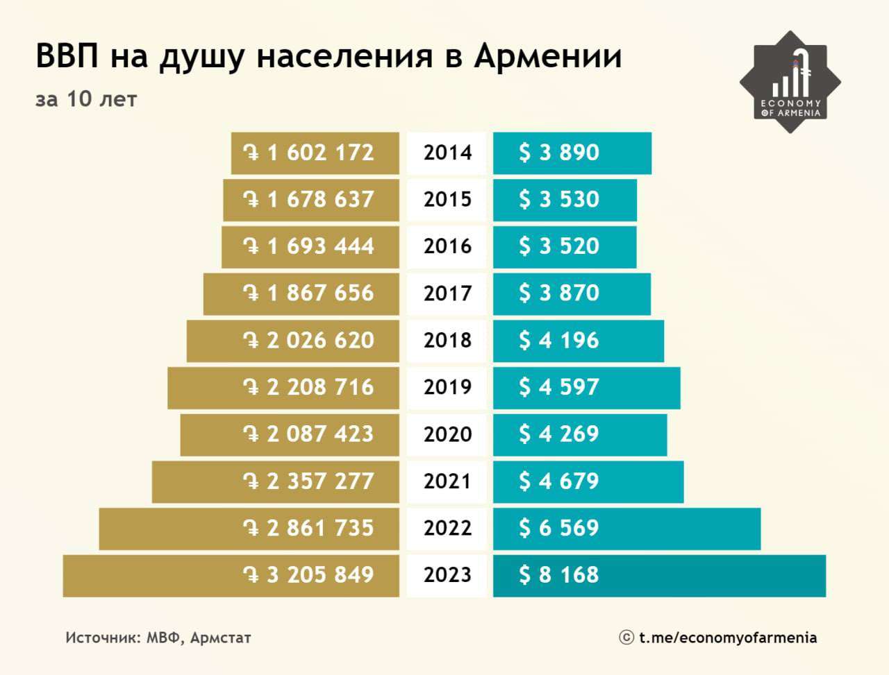 Այլ երկրների համեմատությամբ սկսել ենք աճ գրանցել միայն վերջին երկու տարում։ Այս 30 հորիզոնականի աճն էլ ունեցել ենք` անցնելով թույլ զարգացած երկրների, որոնց ցուցանիշները իրար շատ մոտ են։ Իսկ մեր դիրքից ավելի բարձր գտնվող երկրների ցուցանիշները անգամներով սկսում են աճել, ու, օրինակ, ևս մոտ 20 հորիզոնական բարձրանալու համար մեզ պետք էր անցած տարի ունենալ մեկ շնչին ընկնող 2 անգամ մեծ ՀՆԱ, ու դրանից հետո նոր, միայն, կանցնեինք աշխարհի մեկ շնչին ընկնող միջին ՀՆԱ-ի ցուցանիշը։
