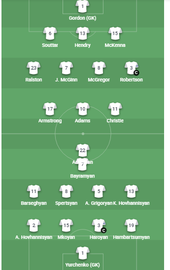 Հանդիպումը կմեկնարկի Երևանի ժամանակով 22:45-ին։ Թիմերը խաղադաշտ դուրս կգան հետևյալ կազմերով․