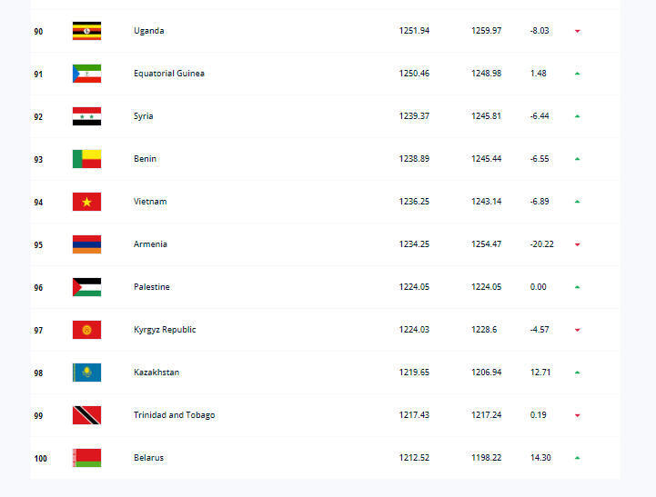 Հայաստանի ազգային հավաքականը ՖԻՖԱ-ի՝ հոկտեմբերի 26-ին թարմացված դասակարգման աղյուսակում զբաղեցնում է 95-րդ տեղը։ Վարկանիշային նախորդ աղյուսակում Հայաստանի ընտրանին 91-րդն էր: