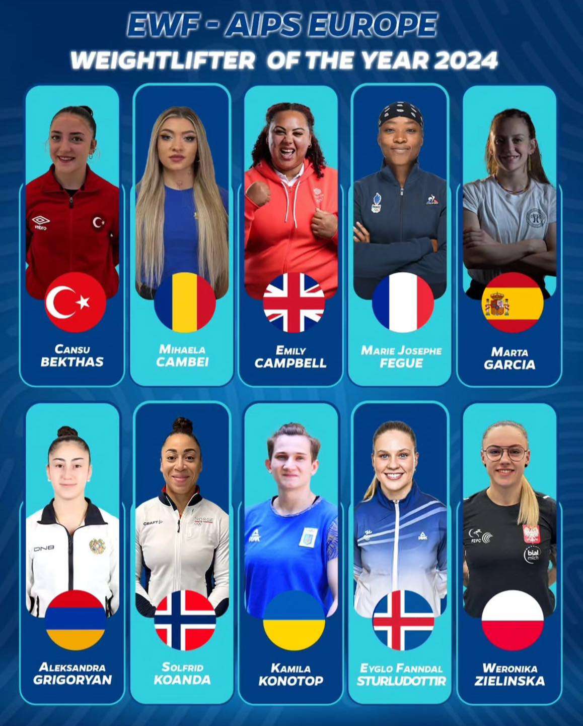 Հայաստանի Ծանրամարտի ֆեդերացիայից հայտնում են, որ Օլիմպիական խաղերի արծաթե մեդալակիր, աշխարհի և Եվրոպայի չեմպիոն Վարազդատ Լալայանը և Եվրոպայի չեմպիոն, աշխարհի առաջնության բրոնզե մեդալակիր Ալեքսանդրա Գրիգորյանը հավակնում են Եվրոպայում 2024 թվականի լավագույնների (կին ծանրորդ, տղամարդ ծանրորդ) կոչումներին: