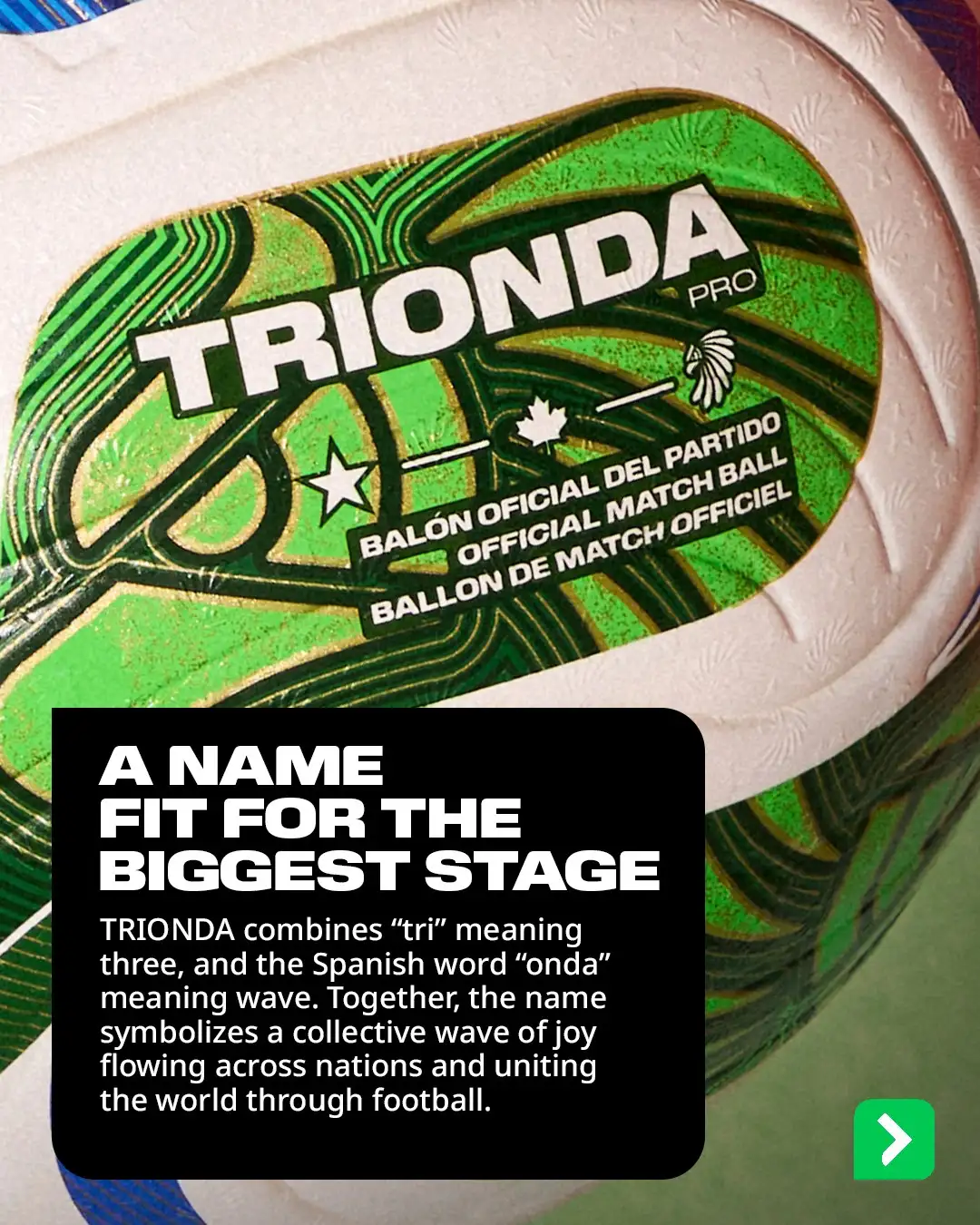 «Trionda» անունը կրող գնդակի դիզայնը (իսպաներենից թարգմանաբար՝ երեք ալիք) պատրաստված է կարմիր-կանաչ-կապույտ գունային լուծումներով, որը խորհրդանշում է այն փաստը, որ առաջին անգամ երեք հյուրընկալող երկրները՝ Կանադան, Մեքսիկան և ԱՄՆ-ն, միավորվում են աշխարհի առաջնության անցկացման համար: