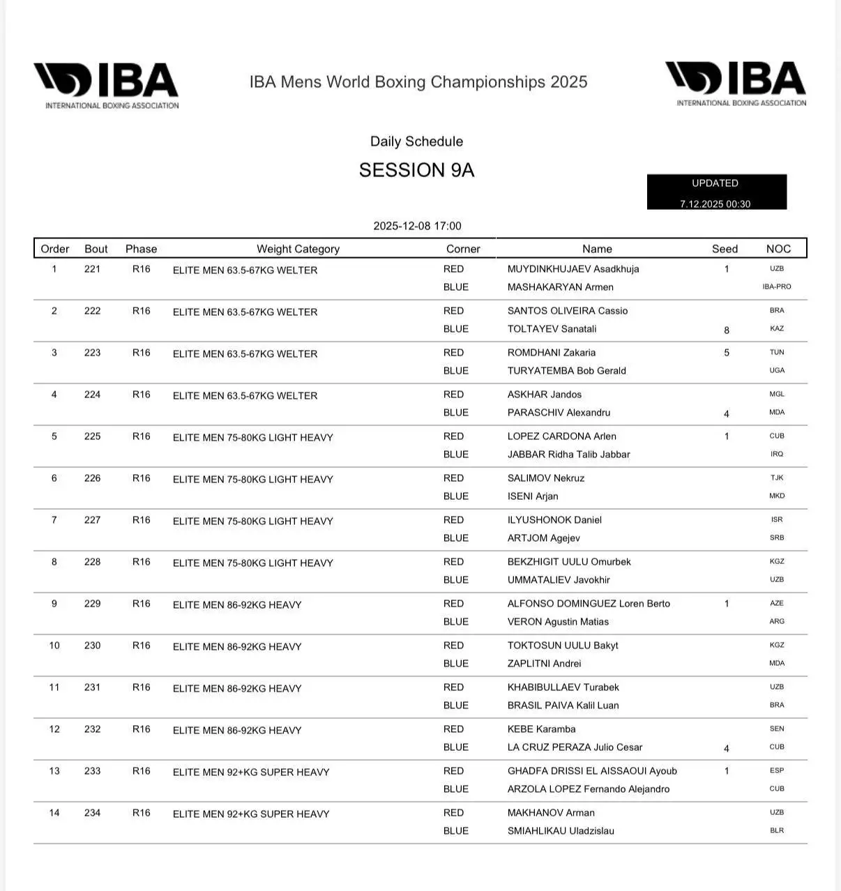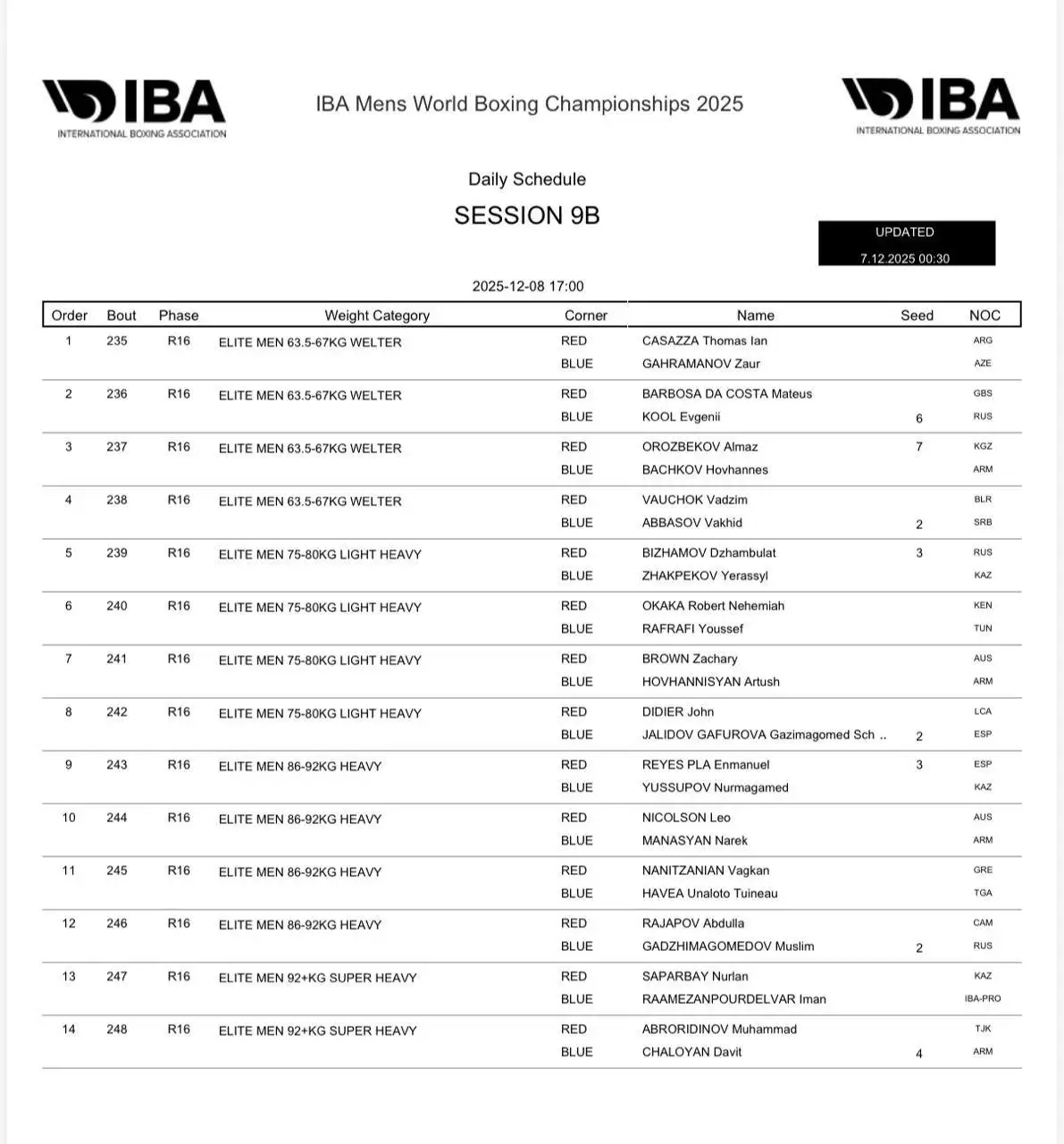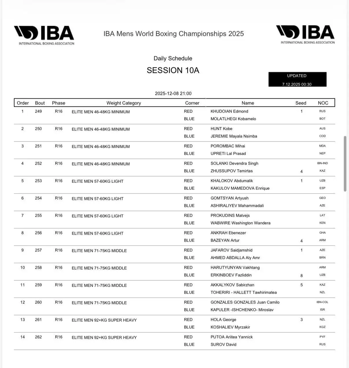 Այսօր՝ դեկտեմբերի 8-ին, աշխարհի առաջնության 5-րդ մրցումային օրը Հայաստանն ունի 8 ներկայացուցիչ. հայտնում է Հայաստանի բռնցքամարտի ֆեդերացիան: