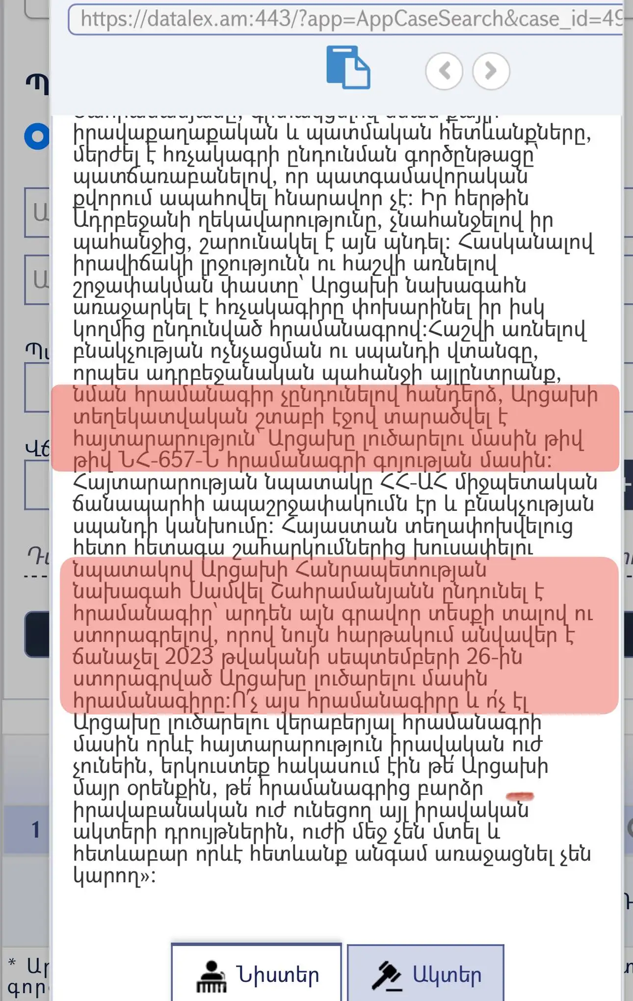 «Սամվել Շահրամանյանը, վերջապես, մի սխրանք է գործել՝ դասագրքի թեմայով դիմելով դատարան անձամբ իմ դեմ, ապա՝ ԿԳՄՍՆ-ի։ Կարդում եմ հայցադիմումը և մի զարմանահրաշ զավեշտ հայտնաբերում։ Ուրեմն, գրվածից ստացվում է՝ 2023թ. սեպտեմբերի 26-ին նա հրամանագիր չի ստորագրել, բայց սեպտեմբերի 28-ին Արցախի տեղեկատվական շտաբով դրա բովանդակության մասին ի լուր աշխարհի ծանուցել է։ Ապա հոկտեմբերի 19-ին հրամանագիր է ստորագրել՝ չեղարկելով սեպտեմբերի 26-ին «գոյություն չունեցած», բայց պաշտոնապես հայտարարված-համարակալված, իր իսկ խոստովանությամբ՝ «26.09.2023-ին ստորագրված ՆՀ-657-Ն հրամանագիրը»։
