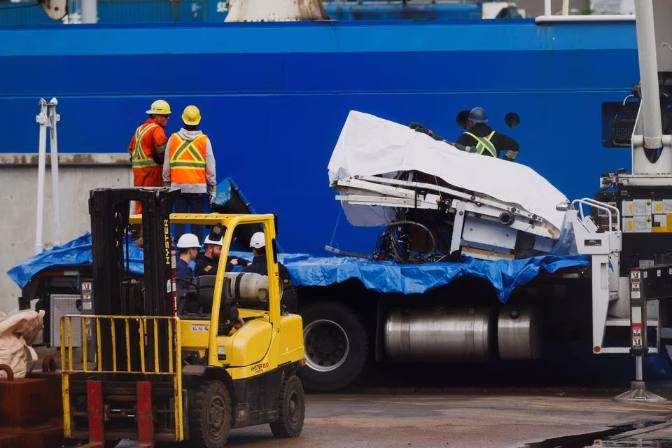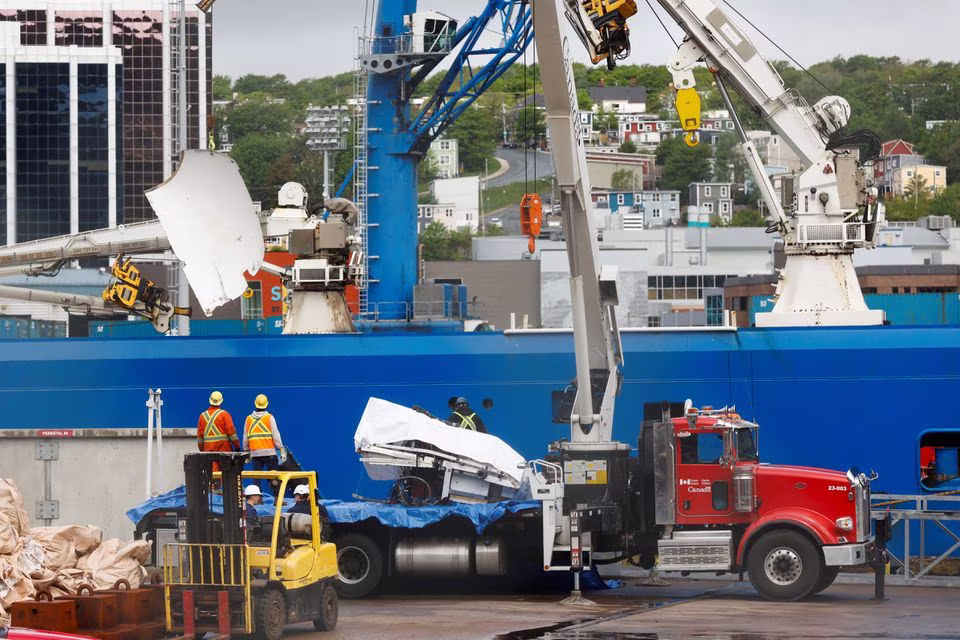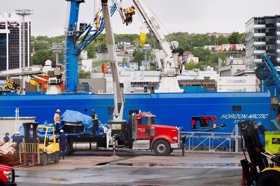 «Տիտանի» հնարավոր մնացորդներն ու փշրված հատվածները, որոնք ոչնչացվել էին «Տիտանիկ» խորտակված նավի ուղղությամբ սուզվելու ժամանակ, տեղափոխվել են Սենտ Ջոնս՝ վթարի վայրից մոտ 400 մղոն (650 կմ) դեպի հյուսիս: