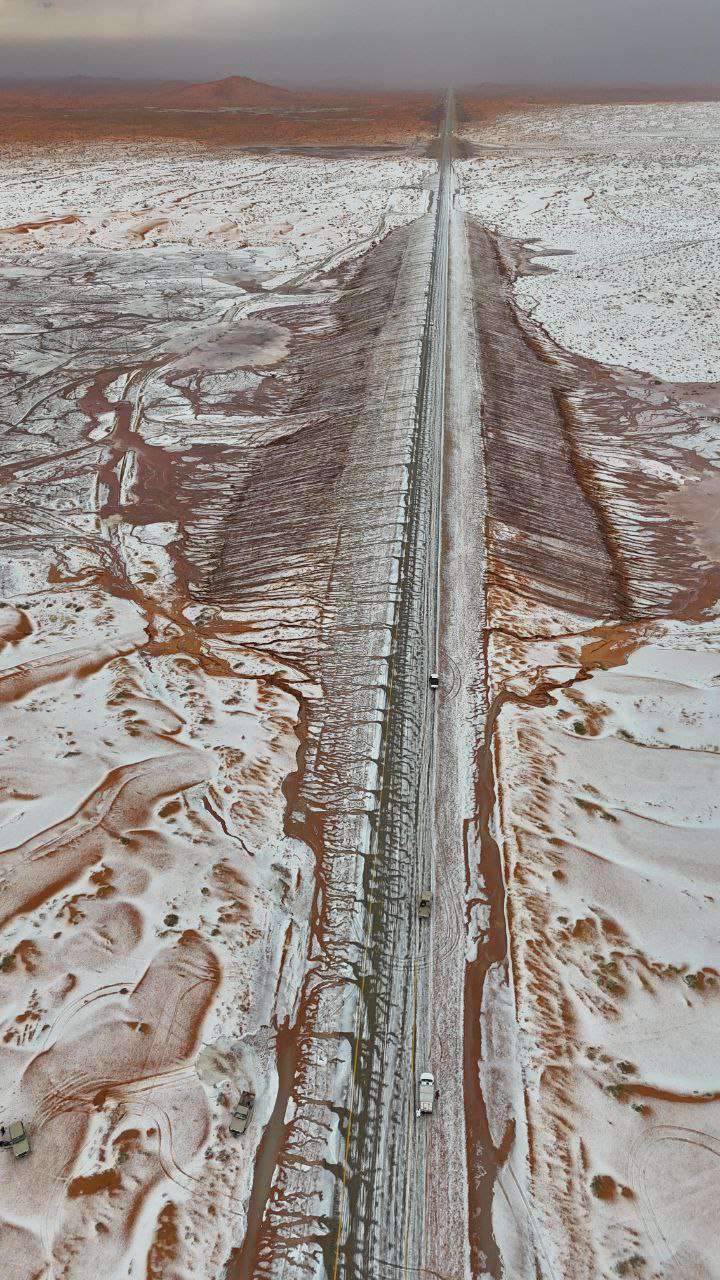 Սաուդյան Արաբիայում անապատը ծածկված է ձյունով։