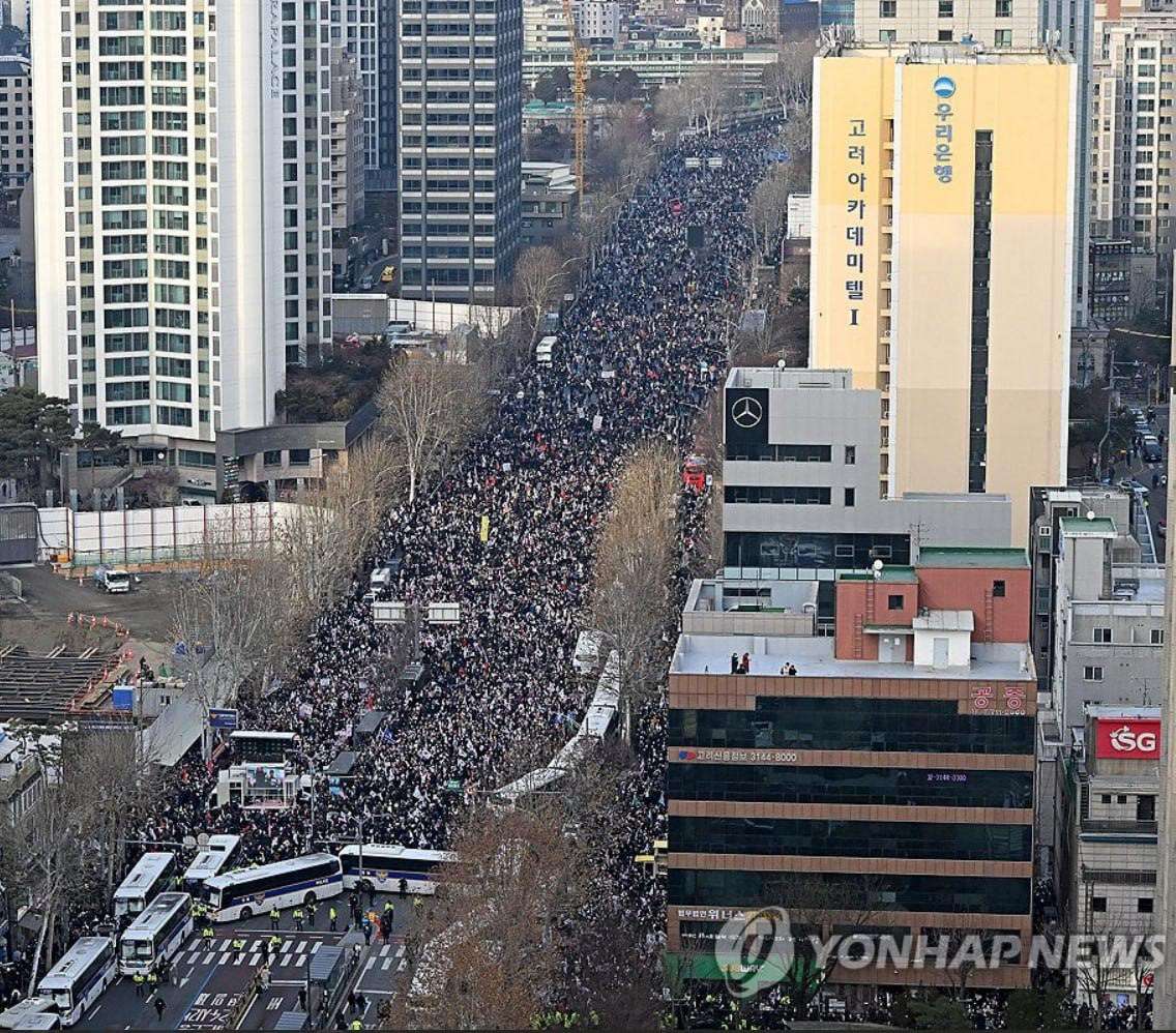 «Նրա՝ ավելի քան 40.000 համախոհներ դուրս են եկել ցույցին՝ ծածանելով ամերիկյան դրոշները և ցուցաբերելով ծայրահեղ ագրեսիա»,- հայտնում է Yonhap գործակալությունը։