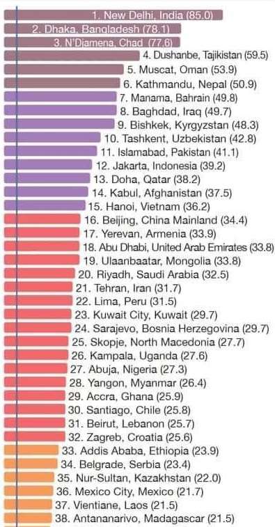 Համաշխարհային օդի որակի 2021թ. ամփոփման համաձայն՝ օդի աղտոտվածությամբ Երևանը Եվրոպայի ամենակեղտոտ մայրաքաղաքն է. այն զբաղեցնում է 17-րդ հորիզոնականը։