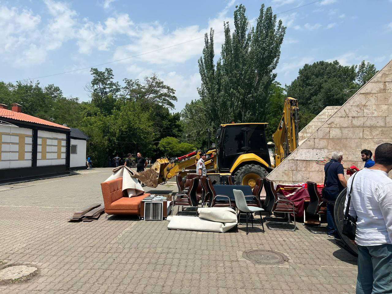 Երևանի քաղաքապետարանի Կենտրոն վարչական շրջանի աշխատակազմը՝ Սամվել Ղուկասյանի գլխավորությամբ Երևանի մետրոպոլիտենի «Երիտասարդական» կայարանին հարող տարածքում ապօրինի շինությունը ապամոնտաժում է։