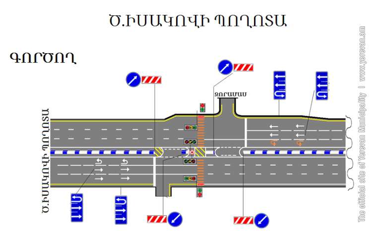 Երևանի քաղաքապետարանից տեղեկացնում են, որ մայրաքաղաքում տրանսպորտային հոսքերի անցանելիությունն ավելացնելու նպատակով ս.թ. սեպտեմբերի 3-ից երթևեկության կազմակերպման փոփոխություն կկատարվի Ծովակալ Իսակովի պողոտայում՝ ՀՀ ոստիկանության ներքին զորքերի զորամասի հարակից ճանապարհահատվածում: Մասնավորապես՝ հետադարձի համար նախատեսված երթևեկելի գոտին կփոխարինվի ուղիղ երթևեկությամբ գոտիով:
