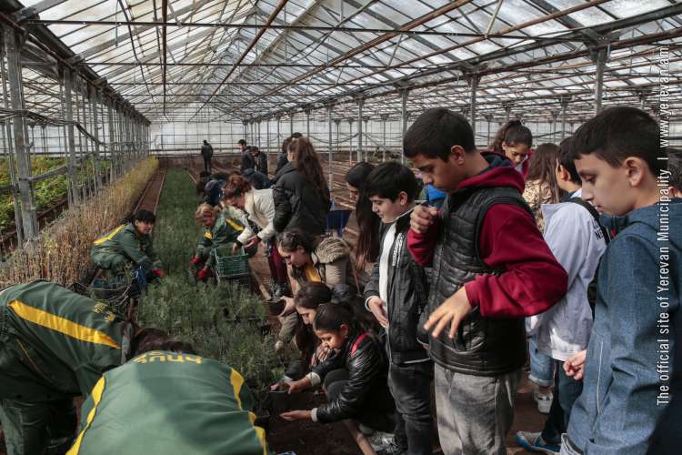Քաղաքային ջերմատանը երեխաները ծանոթացան Երևանում տնկվող ծառերի ու բույսերի աճեցմանն ու խնամքին: Նրանք մասնակցեցին նաև տնկարանի աշխատանքներին: